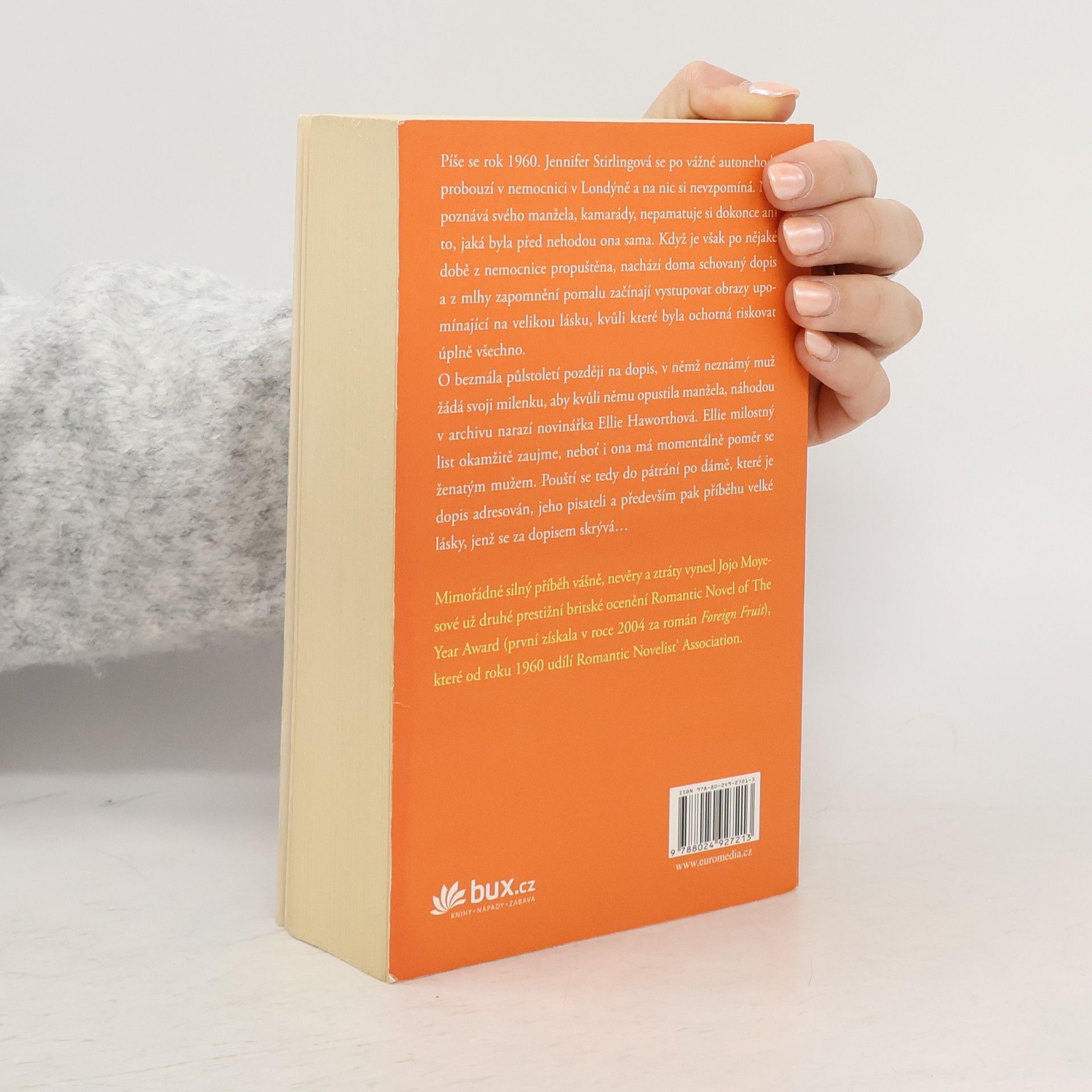 Mimořádně silný příběh vášně, nevěry a ztráty z pera respektované britské autorky Jojo Moyesové, který získal v roce 2011 prestižní ocenění The Romantic Novel of the Year Award. Novinářka Ellie při pátrání v archivu narazí na půlstoletí starý dopis, v němž neznámý muž žádá svoji milenku, aby opustila manžela. Ellie příběh, skrývající se za dopisem, okamžitě zaujme – i ona sama má poměr se ženatým mužem. Rok 1960. Jennifer Stirlingová leží v nemocnici po vážné autonehodě a na nic si nepamatuje – na manžela, na své kamarády, ani na to, jaká byla ona sama. Když se však vrátí z nemocnice domů a najde tajný dopis, pomalu se začíná rozpomínat na milence, kvůli kterému byla kdysi ochotná riskovat úplně všechno.