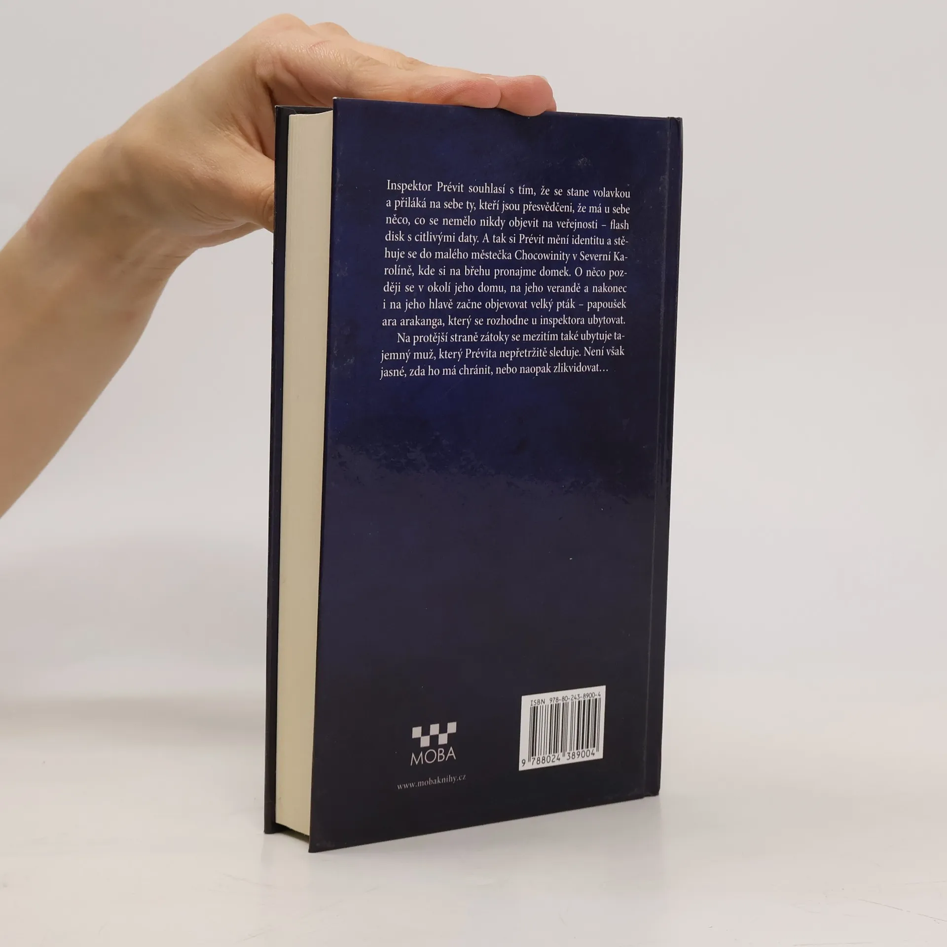 Inspektor Prévit souhlasí s tím, že se stane volavkou a přiláká na sebe ty, kteří jsou přesvědčeni, že má u sebe něco, co se nemělo nikdy objevit na veřejnosti – flash disk. A tak mizí z povrchu země, mění si identitu, stěhuje se do malého městečka Chocowinity v Severní Karolíně, kde si na břehu pronajme domek. V okolí Prévitova domku, později na jeho verandě a nakonec i na jeho hlavě se začne objevovat velký pták – papoušek ara arakanga, který se rozhodne u inspektora ubytovat. Na protější straně zátoky se také ubytuje muž. Velel ostraze malé dešifrovací skupiny. Teď nepřetržitě sleduje Prévita. Je však obtížné odhadnout, zda ho má chránit, anebo odpravit.