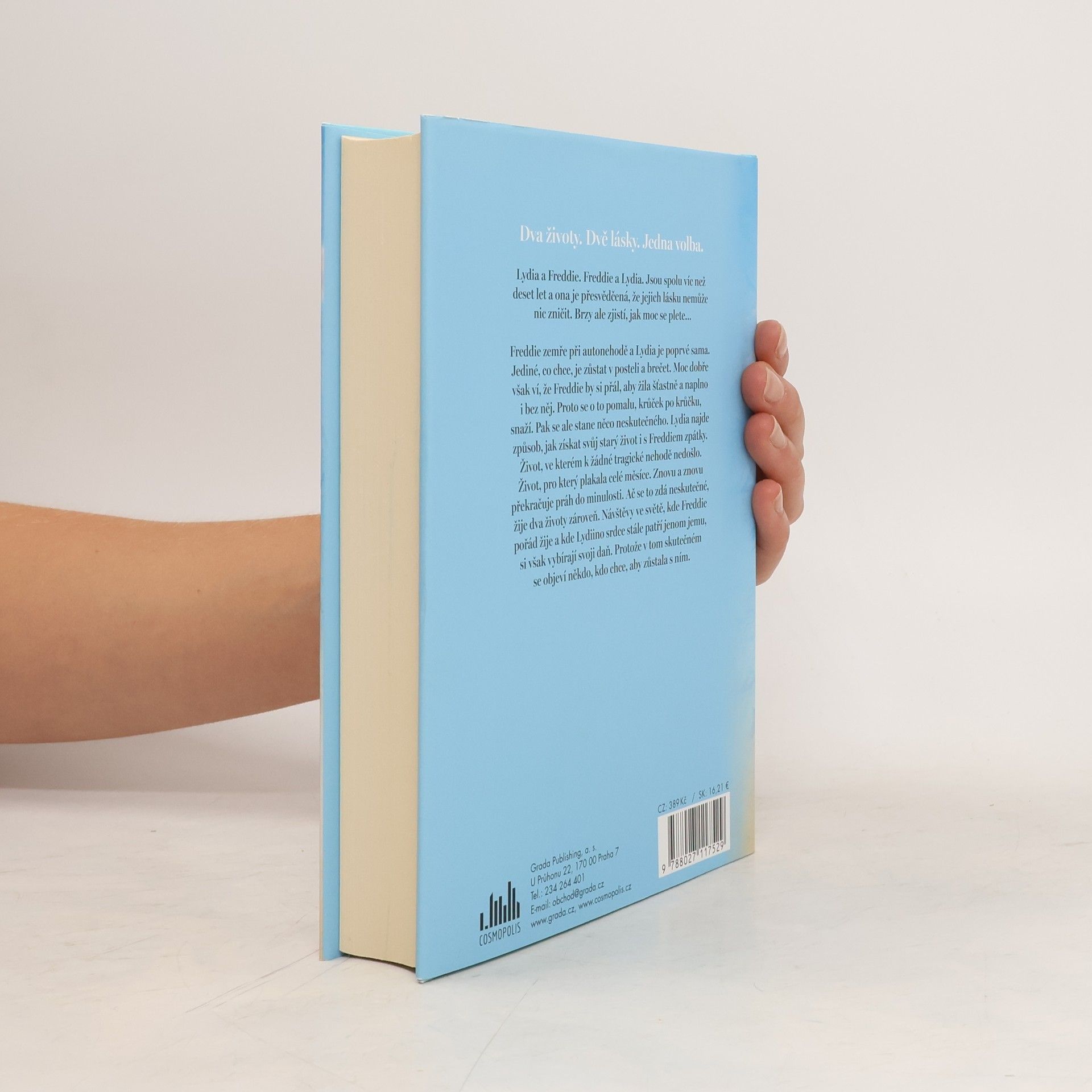 Dva životy. Dvě lásky. Jedna volba. Lydia a Freddie. Freddie a Lydia. Jsou spolu víc než deset let a ona je přesvědčená, že jejich lásku nemůže nic zničit. Brzy ale zjistí, jak moc se plete… Freddie zemře při autonehodě a Lydia je poprvé sama. Jediné, co chce, je zůstat v posteli a brečet. Moc dobře však ví, že Freddie by si přál, aby žila šťastně a naplno i bez něj. Proto se o to pomalu, krůček po krůčku, snaží. Pak se ale stane něco neskutečného. Lydia najde způsob, jak získat svůj starý život i s Freddiem zpátky. Život, ve kterém k žádné tragické nehodě nedošlo. Život, pro který plakala celé měsíce. Znovu a znovu překračuje práh do minulosti. Ač se to zdá neskutečné, žije dva životy zároveň. Návštěvy ve světě, kde Freddie pořád žije a kde Lydiino srdce stále patří jenom jemu, si však vybírají svoji daň. Protože v tom skutečném se objeví někdo, kdo chce, aby zůstala s ním.