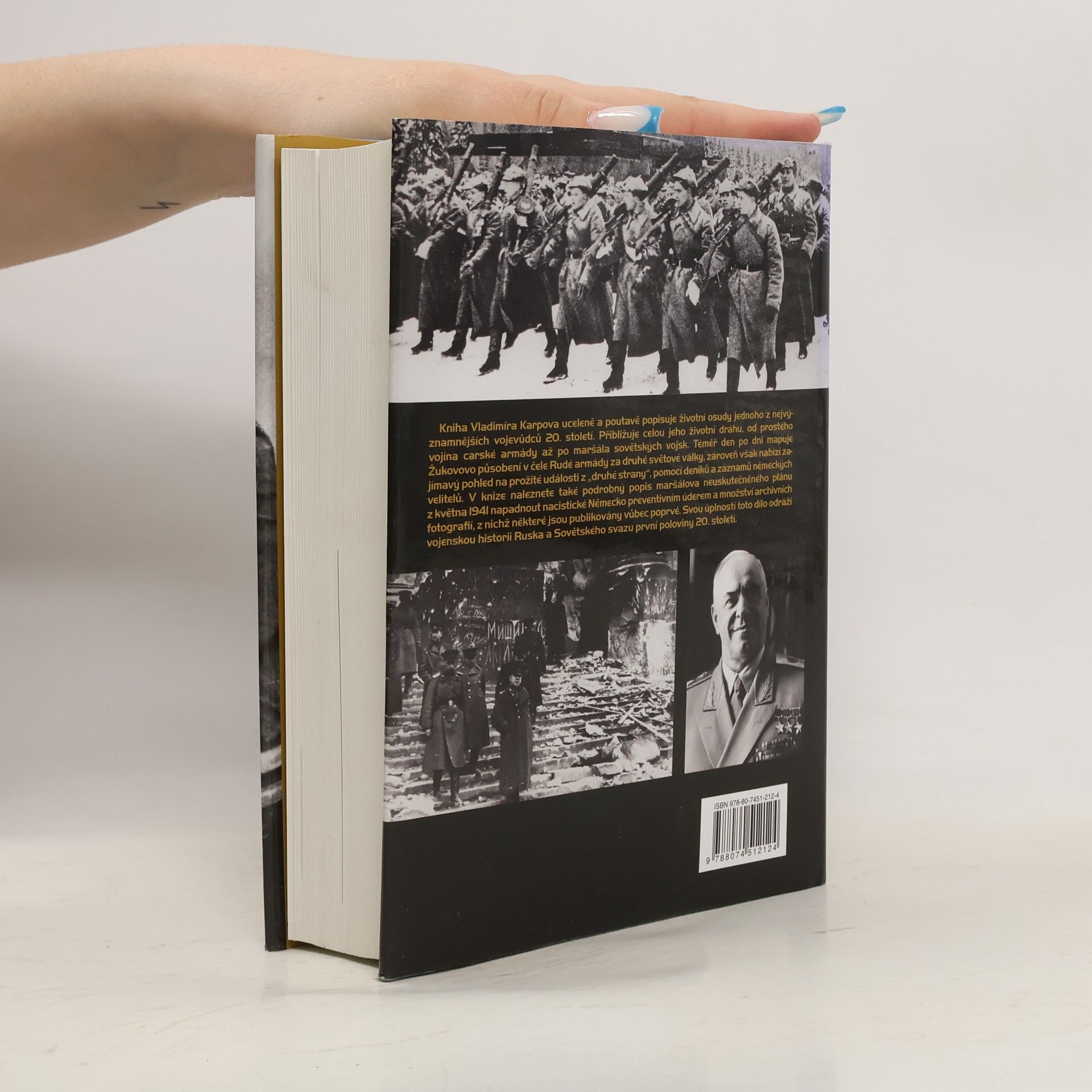 Mimořádná publikace Maršál Žukov, kterou napsal Vladimír Karpov, uceleně a poutavě popisuje životní osudy jednoho z nejvýznamnějších vojevůdců 20. století. Přibližuje celou jeho životní dráhu, od prostého vojína carské armády až po maršála sovětských vojsk. Téměř den po dni mapuje Žukovovo působení v čele Rudé armády za druhé světové války, zároveň však nabízí zajímavý pohled na prožité události z "druhé strany", pomocí deníků a záznamů německých velitelů. V knize naleznete první podrobný popis maršálova neuskutečněného plánu z května 1941 napadnout nacistické Německo preventivním úderem a množství archivních fotografií, z nichž některé jsou publikovány vůbec poprvé. Svou úplností toto dílo odráží vojenskou historii Ruska a Sovětského svazu první poloviny 20. století.