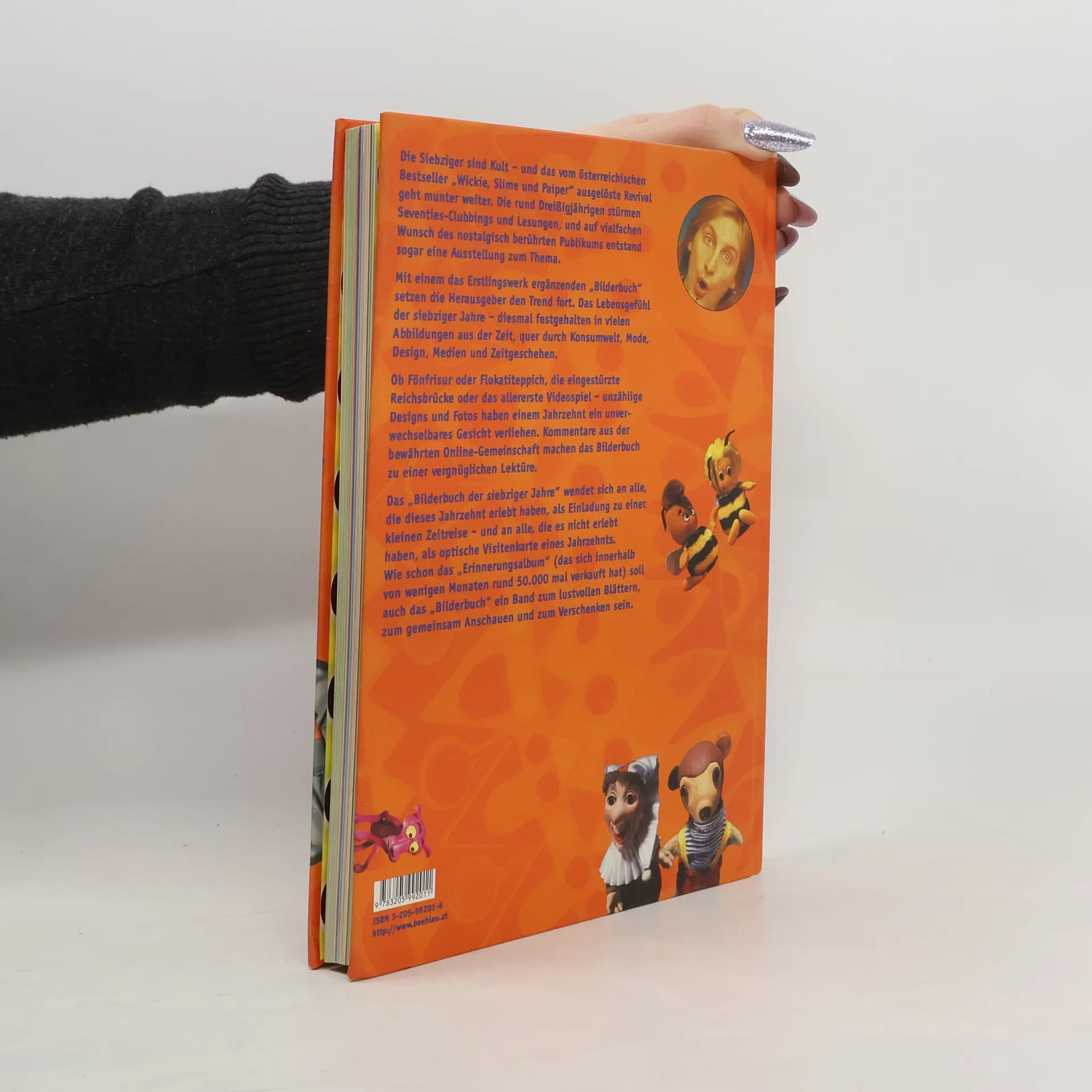 Die Siebziger sind Kult – und das vom österreichischen Bestseller „Wickie, Slime und Paiper” ausgelöste Revival geht munter weiter. Die rund Dreißigjährigen stürmen Seventies-Clubbings und Lesungen, und auf vielfachen Wunsch des nostalgisch berührten Publikums entstand sogar eine Ausstellung zum Thema. Mit einem das Erstlingswerk ergänzenden „Bilderbuch” setzen die Autoren den Trend fort. Das Lebensgefühl der siebziger Jahre – diesmal festgehalten in vielen Abbildungen aus der Zeit, quer durch Konsumwelt, Mode, Design, Medien und Zeitgeschehen. Ob Fönfrisur oder Flokatiteppich, die eingestürzte Reichsbrücke oder das allererste Videospiel – unzählige Designs und Fotos haben einem Jahrzehnt ein unverwechselbares Gesicht verliehen. Kommentare aus der bewährten Online-Gemeinschaft machen das Bilderbuch zu einer vergnüglichen Lektüre. Das „Bilderbuch der siebziger Jahre” wendet sich an alle, die dieses Jahrzehnt erlebt haben, als Einladung zu einer kleinen Zeitreise – und an alle, die es nicht erlebt haben, als optische Visitenkarte eines Jahrzehnts. Wie schon das „Erinnerungsalbum” soll auch das „Bilderbuch” ein Band zum lustvollen Blättern, zum gemeinsamen Anschauen und Verschenken sein.