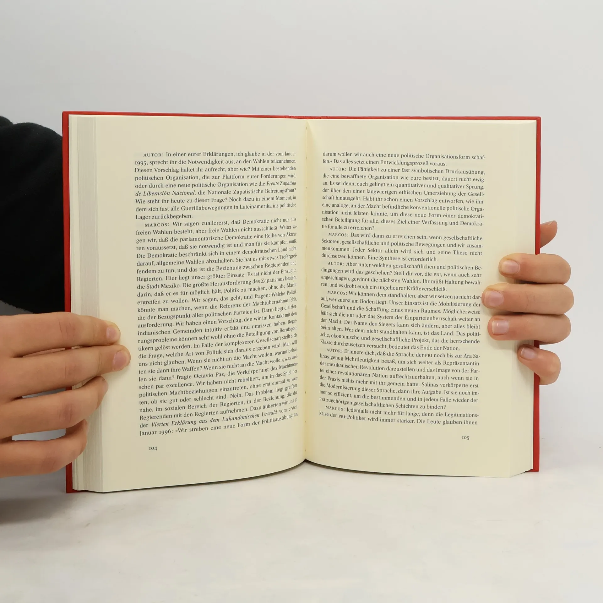Vazquez Montalban beschreibt eine Reise zu den Nachfahren der Mayas nach Chiapas, das Warten auf den Subcomandante, der sich auch „Herr der Spiegel“ nennt, schließlich das mehrere Tage und Nächte andauernde Gespräch. Dabei geht es um die Entwicklung der zapatistischen Bewegung seit 1994, um die Rolle von Marcos als Vermittler einer neuen Sprache, die Bedeutung der Maske als Symbol, um Globalisierung und Neoliberalismus. Der Romancier Manuel Vazquez Montalban wird mit diesem Buch in Deutschland erstmals auch als brillanter Essayist und scharfer Gesellschaftskritiker vorgestellt.