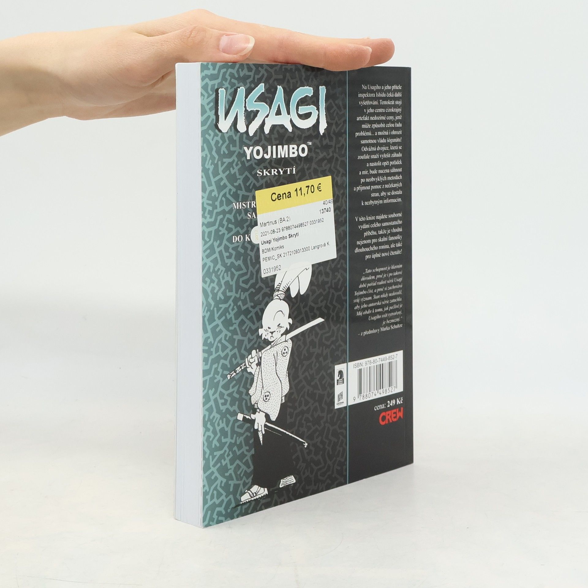 Na Usagiho a jeho přítele inspektora Ishidu čeká další vyšetřování. Tentokrát stojí v jeho centru cizokrajní artefakt nedozírné ceny, jenž může způsobit celou řadu problémů... a možná i ohrozit samotnou vládu šógunátu! Odvážná dvojice, která se zoufale snaží vyřešit záhadu a nastolit opět pořádek a mír, bude nucena sáhnout po neobvyklých metodách a přijmout pomoc z nečekaných stran, aby se dostala k nezbytným informacím. V této knize najdete souborné vydání celého samostatného příběhu, takže je vhodná nejenom pro skalní fanoušky dlouhouchého ronina, ale také pro úplně nové čtenáře!