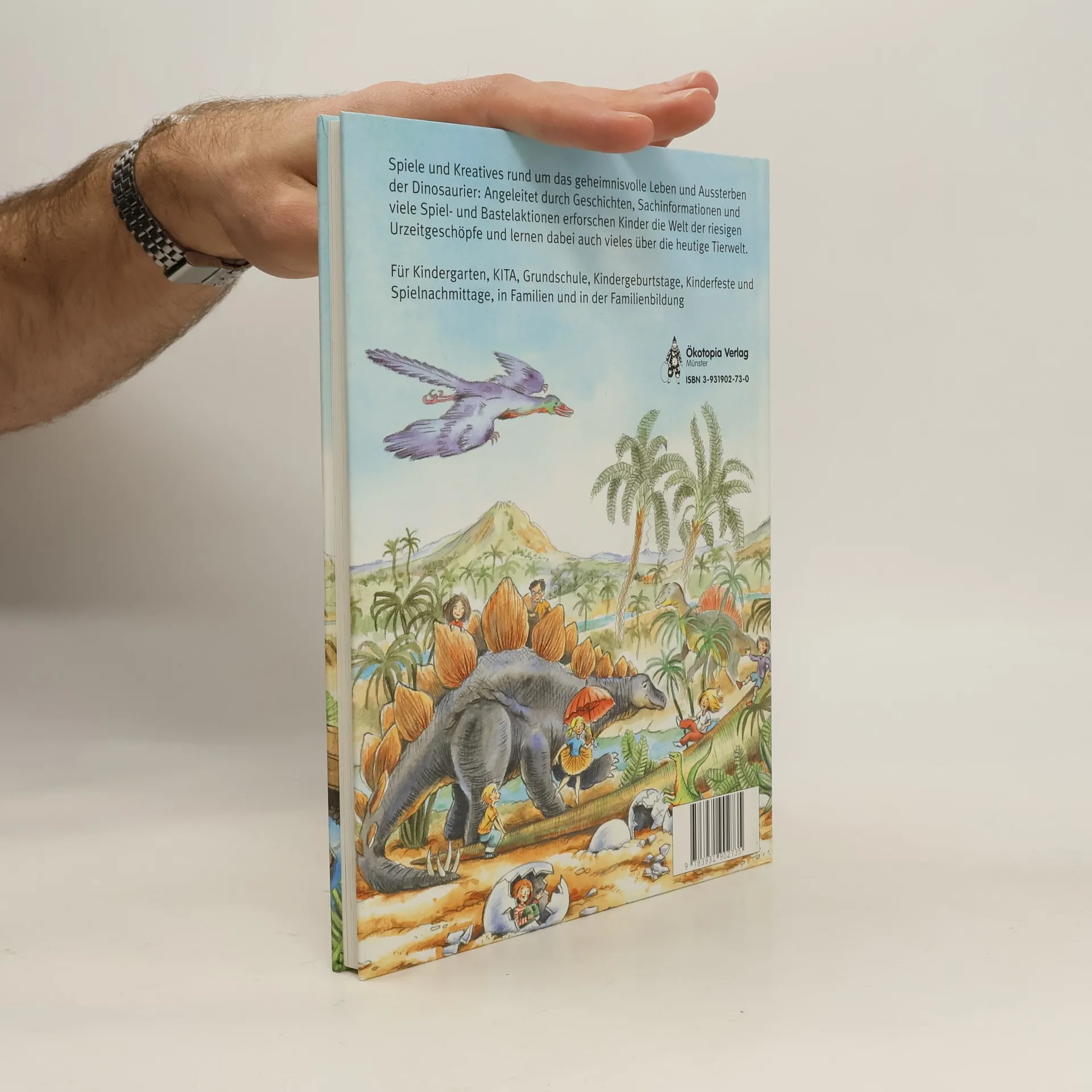 Dinosaurier faszinieren Kinder und Erwachsene gleichermaßen. Wie lebten sie? Wie groß waren sie? Und warum starben sie aus? Zusammen mit Lea und Simon, deren Erlebnisse durch das Buch führen, erkunden die Kinder in lustigen und spannenden Spielen und kreativen Aktivitäten das Leben und Sterben der gewaltigen Urzeitgeschöpfe. Sie sorgen als Gute-Mutter-Saurier für ihren Nachwuchs, gestalten Landschaften für die eigenen Saurier-Spielfiguren, gehen als Raubsaurier auf Jagd und als Dinosaurier-Forscher auf Ausgrabungsexpedition. Zu jedem Kapitel gehören Sachinformationen, die auf verständliche Weise in das Thema einführen, eine Vorlesegeschichte und viele Spiel- und Bastelaktionen. Hinzu kommen Vorschläge für die Gestaltung von Kindergeburtstagen, Kindergarten- oder Schulprojekten sowie von Veranstaltungen in der Familienbildung. Informationen über Dinosaurier in Deutschland, Museen und geeignete Literatur runden das Buch ab.