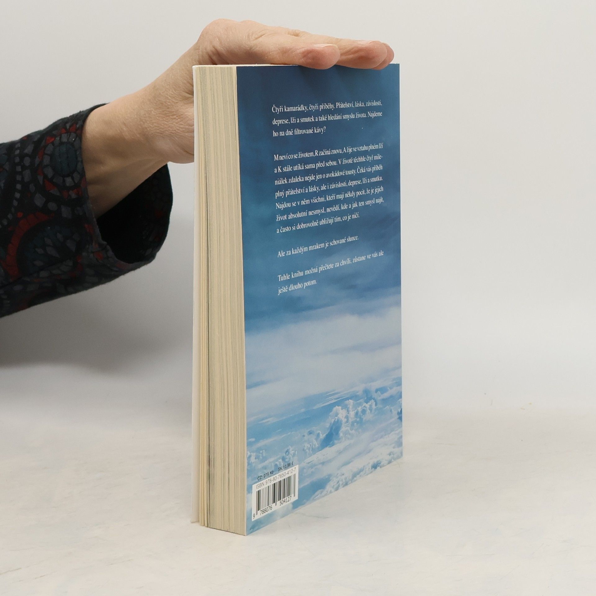Čtyři kamarádky, čtyři příběhy. Přátelství, láska, závislosti, deprese, lži a smutek a také hledání smyslu života. Najdeme ho na dně filtrované kávy? M hledá smysl života, R začíná znovu, A žije ve vztahu plném lží a K stále utíká sama před sebou. V životě těchhle čtyř mileniálek zdaleka nejde jen o avokádové tousty. Čeká vás příběh plný přátelství a lásky, ale i závislosti, deprese, lži a smutku. Najdou se v něm všichni, kteří mají někdy pocit, že je jejich život absolutní nesmysl, nevědí, kde a jak ten smysl najít, a zjišťují, že na dně filtrované kávy to asi nebude. Dobrovolně si ubližují tím, co je ničí. Ale naštěstí přijdou na to, že za každým mrakem je schované slunce. Tuhle knihu možná přečtete za chvíli, ale zůstane ve vás ještě dlouho potom.