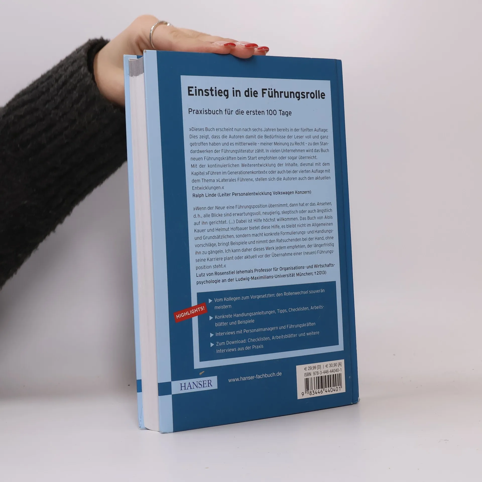 Nach sechs Jahren erscheint dieses Buch in der fünften Auflage, was die hohe Nachfrage und Relevanz der Inhalte unterstreicht. Es gilt als eines der Standardwerke der Führungsliteratur und wird in vielen Unternehmen neuen Führungskräften empfohlen oder überreicht. Die Autoren haben die Inhalte kontinuierlich weiterentwickelt, zuletzt mit dem Kapitel „Führen im Generationenkontext“ und zuvor mit dem Thema „Laterales Führen“, um aktuellen Entwicklungen Rechnung zu tragen. Ralph Linde, Leiter der Personalentwicklung bei Volkswagen, hebt hervor, dass neue Führungskräfte oft unter dem Blick der Erwartungen stehen und Unterstützung benötigen. Das Buch bietet konkrete Formulierungs- und Handlungsvorschläge, Beispiele und begleitet den Leser, ohne ihn zu bevormunden. Lutz von Rosenstiel, ehemaliger Professor für Organisations- und Wirtschaftspsychologie, empfiehlt es jedem, der seine Karriere langfristig plant oder vor der Übernahme einer neuen Führungsposition steht. Zu den Highlights gehören der souveräne Umgang mit dem Rollenwechsel vom Kollegen zum Vorgesetzten, praktische Handlungsanleitungen, Tipps, Checklisten und Interviews mit Personalmanagern und Führungskräften. Zudem sind Checklisten und Arbeitsblätter zum Download verfügbar.