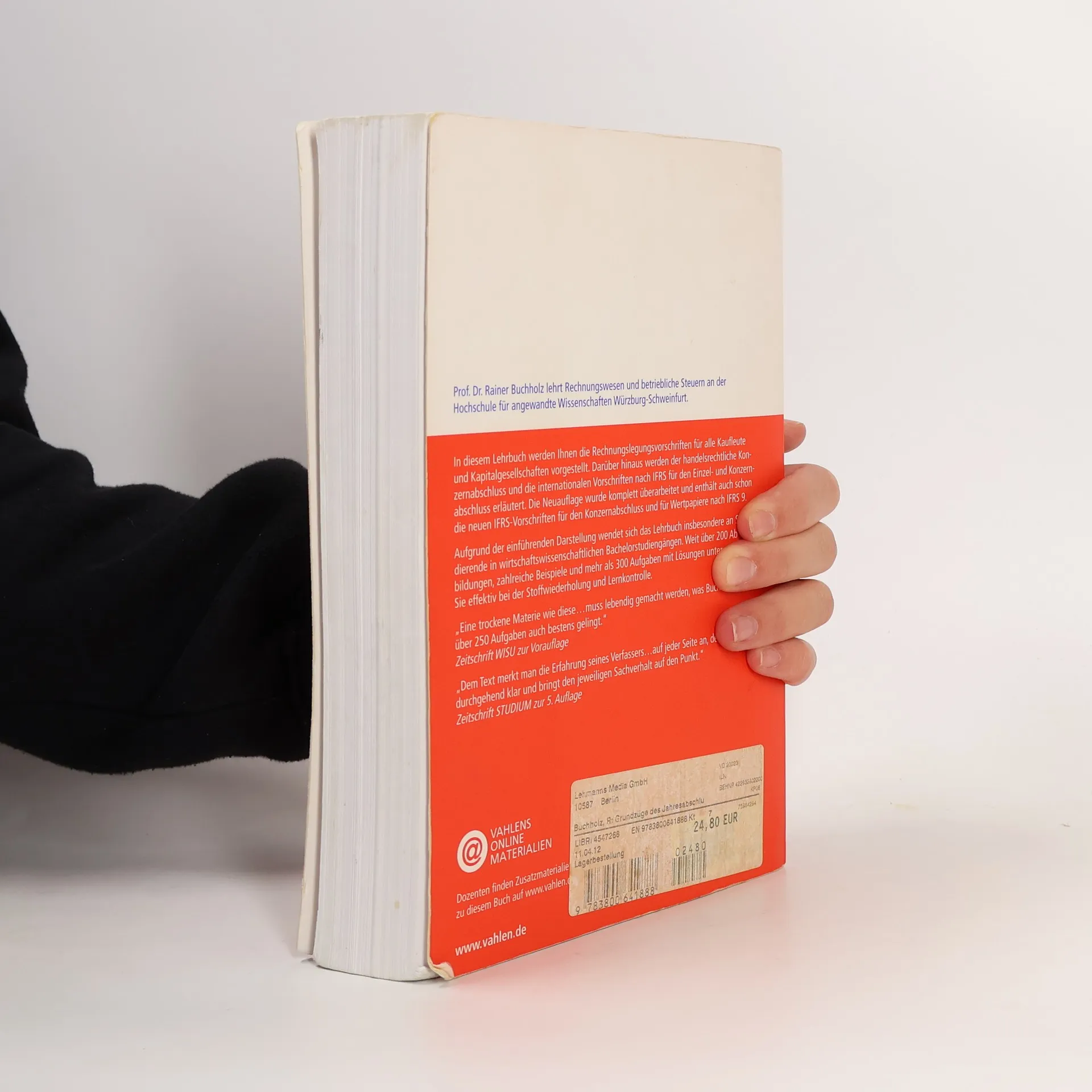 In diesem Lehrbuch werden Ihnen die Rechnungslegungsvorschriften für alle Kaufleute und Kapitalgesellschaften vorgestellt. Darüber hinaus werden der handelsrechtliche Konzernabschluss und die internationalen Vorschriften nach IFRS für den Einzel- und Konzernabschluss erläutert.Über 200 Abbildungen, zahlreiche Beispiele und mehr als 250 Aufgaben mit Lösungen unterstützen den Leser effektiv bei der Stoffwiederholung und Lernkontrolle.- Einführung in die Erstellung des Jahresabschlusses nach HGB und IFRS- Erlaubt schnellen Überblick in zentrale Bereiche des Rechnungswesens- Aktuell: Änderungen aufgrund des BilMoG wurden aufgenommen- Ideal zur Prüfungsvorbereitung: über 150 Seiten mit Aufgaben und LösungenProf. Dr. Rainer Buchholz lehrt Rechnungswesen und betriebliche Steuern an der Fachhochschule Würzburg.„Eine empfehlenswerte und benutzerfreundliche Einführung in Fragen des Jahresabschlusses.“Controller-Magazin 7/8-2008„Dem Text merkt man die Erfahrung seines Verfassers … auf jeder Seite an, denn er ist durchgehend klar und bringt den jeweiligen Sachverhalt auf den Punkt.“STUDIUM, Sommersemester 2008- Alle Abbildungen für DozentenFür Studierende der Betriebswirtschaftslehre mit dem Schwerpunkt Rechnungswesen an Universitäten, Fachhochschulen und Akademien.