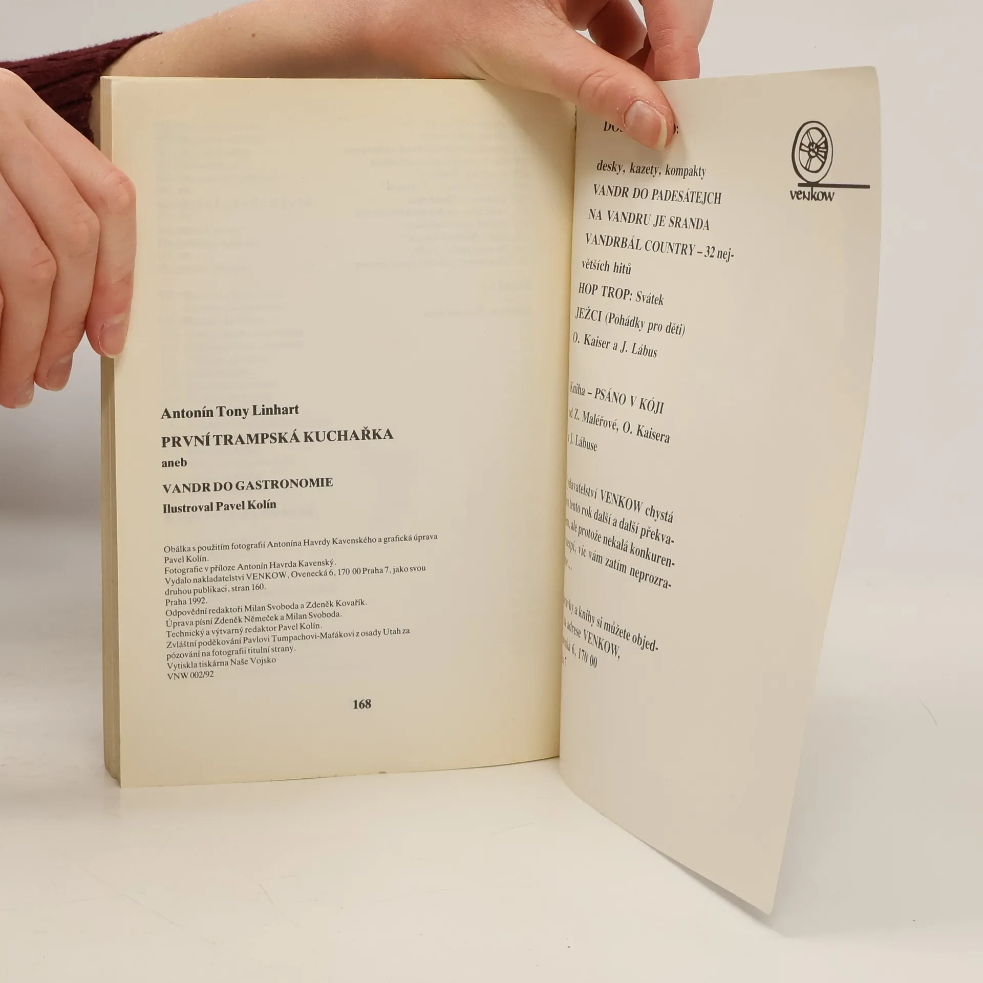 Velký vandr do gastronomie, originální a ojedinělá kuchařská kniha obsahuje ve 12 ti kapitolách : 12 příběhů s neobyčejným začátkem a docela obyčejným koncem 12 známých trampských písní, které se při vaření naučíte zpívat, doplněno notami 165 originálních i okoukaných kuchařských předpisů, vhodných pro vaření v přírodě a na chatě Doplněno ilustracemi a barevnými fotografiemi.