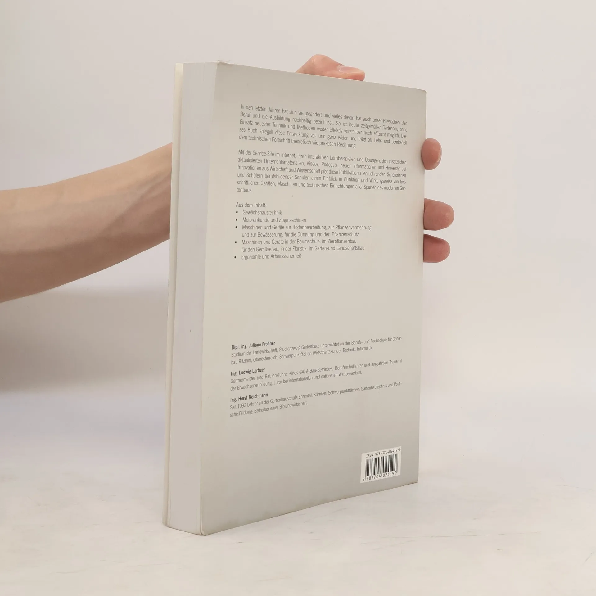 Moderner Gartenbau ist ohne Einsatz von Technik heute kaum noch vorstellbar. In nahezu allen Sparten des Dienstleistungsgartenbaus sind es Geräte, Maschinen und technische Einrichtungen, die die oft beschwerlichen Arbeitsabläufe erleichtern. Um am umkämpften Markt zu reüssieren benötigen Produktionsbetriebe zeitgemäße Gewächshaustechnik, Klimasteuerung, Dünge- und Pflanzenschutz-technik, um den Pflanzen naturnahe Wachstumsbedingungen zu verschaffen. Dieses Buch gibt Lehrenden, Schülerinnen und Schülern berufsbildender Schulen einen Einblick in Funktion und Wirkungsweise von Geräten, Maschinen und technischen Einrichtungen aller Sparten des modernen Gartenbaus. Eine umfassende Ergänzung bieten die Webportale von avBUCH. net: Eine Site für Lehrende, eine Site für Schülerinnen und Schüler, auf der interaktive Übungen, aktuelle Lehr- und Lernbehelfe, zusätzliche Unterrichtsmaterialien, Videos, Podcasts, neue Informationen und Hinweise auf Innovationen aus Wirtschaft und Wissenschaft zu finden sind.