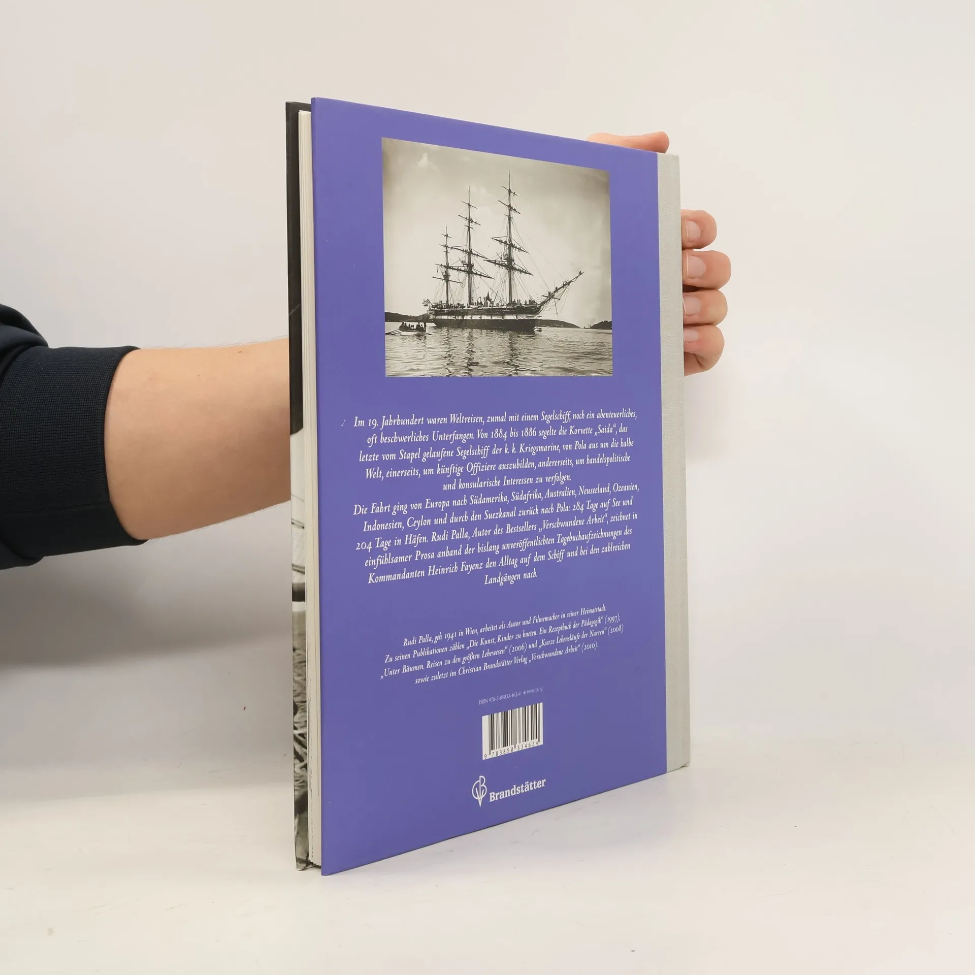 Im 19. Jahrhundert waren Weltreisen, zumal mit einem Segelschiff, noch ein abenteuerliches, oft beschwerliches Unterfangen. Von 1884 bis 1886 segelte die Korvette „Saida“, das letzte vom Stapel gelaufene Segelschiff der k. k. Kriegsmarine, von Pola aus um die halbe Welt, einerseits, um künftige Offiziere der k. k. Kriegsmarine auszubilden, andererseits, um handelspolitische und konsularische Interessen zu verfolgen. Die Fahrt ging von Europa nach Südamerika, Südafrika, Aus tralien, Neuseeland, Ozeanien, Indonesien, Ceylon und durch den Suezkanal zurück nach Pola: 284 Tage auf See und 204 Tage in Häfen. Rudi Palla, Autor des Bestsellers „Verschwundene Arbeit“, zeichnet in einfühlsamer Prosa anhand der bislang unveröffentlichten Tagebuchaufzeichnungen des Kommandanten Heinrich Fayenz den Alltag auf dem Schiff und bei den zahlreichen Landgängen nach. Seine historischen, völkerkundlichen, geographischen und nautischen Exkurse machen das Buch zu einer faszinierenden Lektüre, die nicht nur Freunde der Segelschifffahrt begeistern wird.