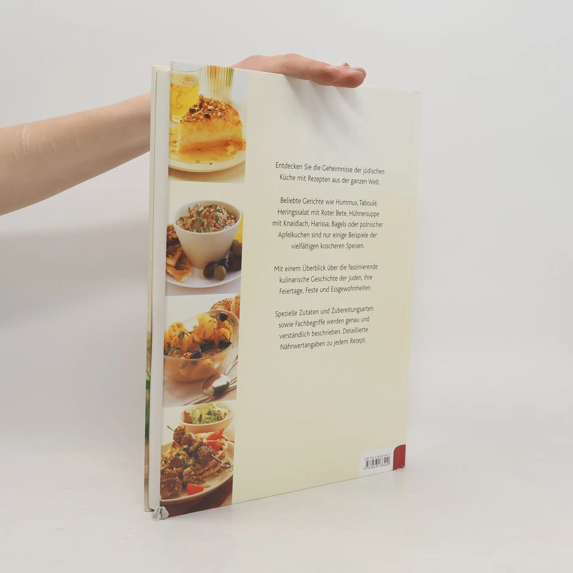 Entdecken Sie die Geheimnisse der jüdischen Küche mit Rezepten aus der ganzen Welt. Beliebte Gerichte wie Hummus, Taboulé, Heringssalat mit Roter Bete, Hühnersuppe mit Knaidlach, Harissa, Bagels oder polnischer Apfelkuchen sind nur einige Beispiele der vielfältigen koscheren Speisen. Mit einem Überblick über die faszinierende kulinarische Geschichte der Juden, ihre Feiertage, Feste und Essgewohnheiten. Spezielle Zutaten und Zubereitungsarten sowie Fachbegriffe werden genau und verständlich beschrieben. Detaillierte Nährwertangaben zu jedem Rezept.