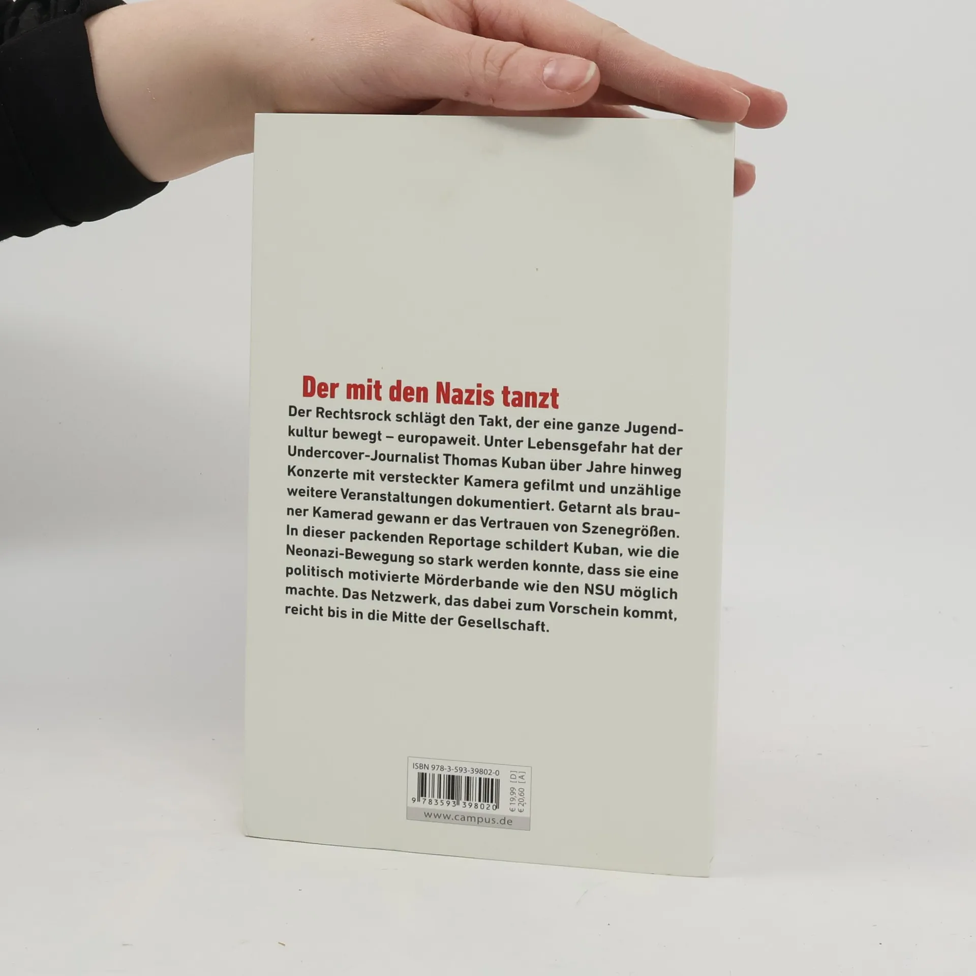 Kaum jemand weiß, wer Thomas Kuban ist – gut für ihn! Denn der Undercover-Journalist hat unter Lebensgefahr die Machenschaften der rechten Musikszene dokumentiert. Getarnt als brauner Kamerad, filmte Kuban über 30 Konzerte von Nazibands. Rechtsrock ist der Takt, zu dem sich eine ganze Jugendkultur bewegt– und das Rekrutierungsinstrument der rechten Hassprediger. Die packende Reportage schildert eine Neonaziszene von erschreckendem Selbstbewusstsein, deren Netzwerk bis in die Mitte der Gesellschaft reicht. Was passiert im Untergrund? Wie ziehen die Szenegrößen ihre Strippen? Dieses Buch zeigt Ihnen den Weg hinter die Kulissen. »Es gibt nicht viele Journalisten, die das Wagnis auf sich nehmen, Informationen aus dem Inneren der gewaltbereiten Neonazi-Szene zu sammeln.« Der Spiegel