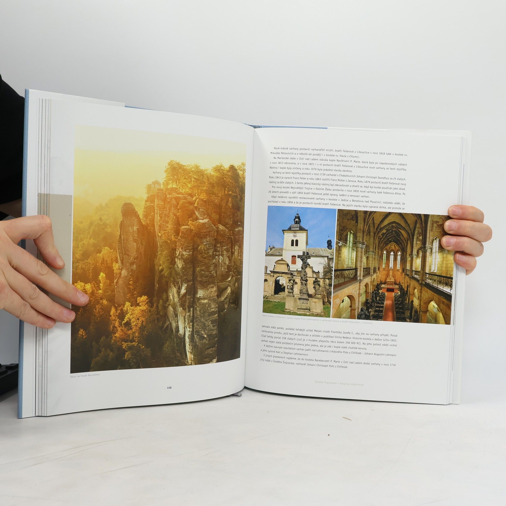 Exkluzivně výpravná publikace představuje České Švýcarsko jako turistickou destinaci světového významu, kterou v historii navštívili, nebo v ní žili významní umělci a byla jim inspirací pro jejich tvorbu. Jedna z kapitol se zabývá estetikou krajiny se sociologickým a filozofickým přesahem, ostatní kapitoly dávají nahlédnout do příběhů slavných jmen a jejich děl (August Frind, Adrian Zingg, Carl Maria von Weber, Hans Christian Andersen, Rainer Maria Rilke, Franz Kafka aj.) a zmiňuje také současné autory - hudebníky, výtvarníky, filmaře inspirované touto krajinou. Text doprovázejí unikátní fotografie krajiny i reprodukce romantických vedut a dalších uměleckých památek.