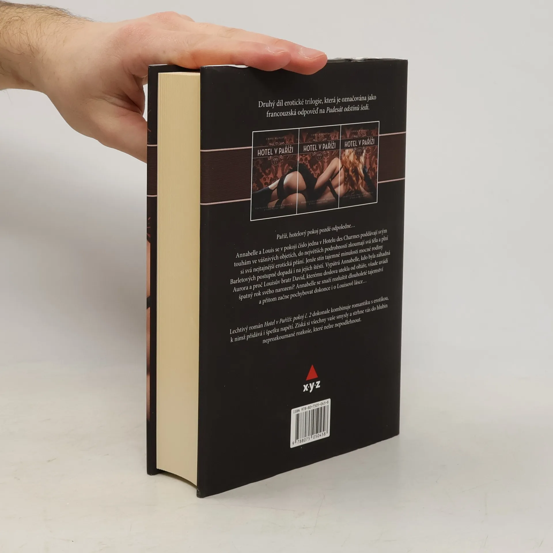 Paříž, hotelový pokoj pozdě odpoledne… Annabelle a Louis se v pokoji číslo jedna v Hotelu des Charmes poddávají svým touhám ve vášnivých objetích, do největších podrobností zkoumají svá těla a plní si svá nejtajnější erotická přání. Jenže stín tajemné minulosti mocné rodiny Barletových postupně dopadá i na i jejich štěstí... Druhý díl erotické trilogie, která je považována za francouzskou odpověď na Fifty Shades of Grey.