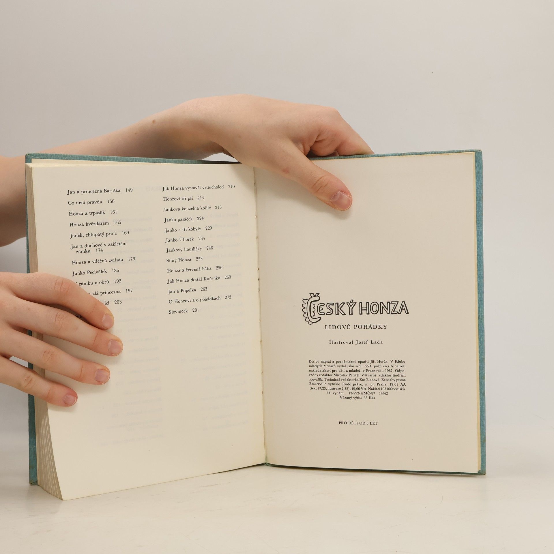 Chytrý, silný, odvážný, důvtipný, ale také třeba líný, nerozhodný, mladík, který tropí spoustu šibalských kousků - ano, takový může být Honza. Humorné pohádky o českém Honzovi sebral a upravil Jiří Horák, obrázky k nim nakreslil Josef Lada. V knížce najdeme vyprávění o tom, jak se stal Honza čarodějem, lékařem nebo dokonce hvězdářem, jak se učil tajné řeči, jak rozesmál princeznu a mnoho dalších příhod, v nichž Honza vtipem a chytrostí zvítězí nad svými protivníky.