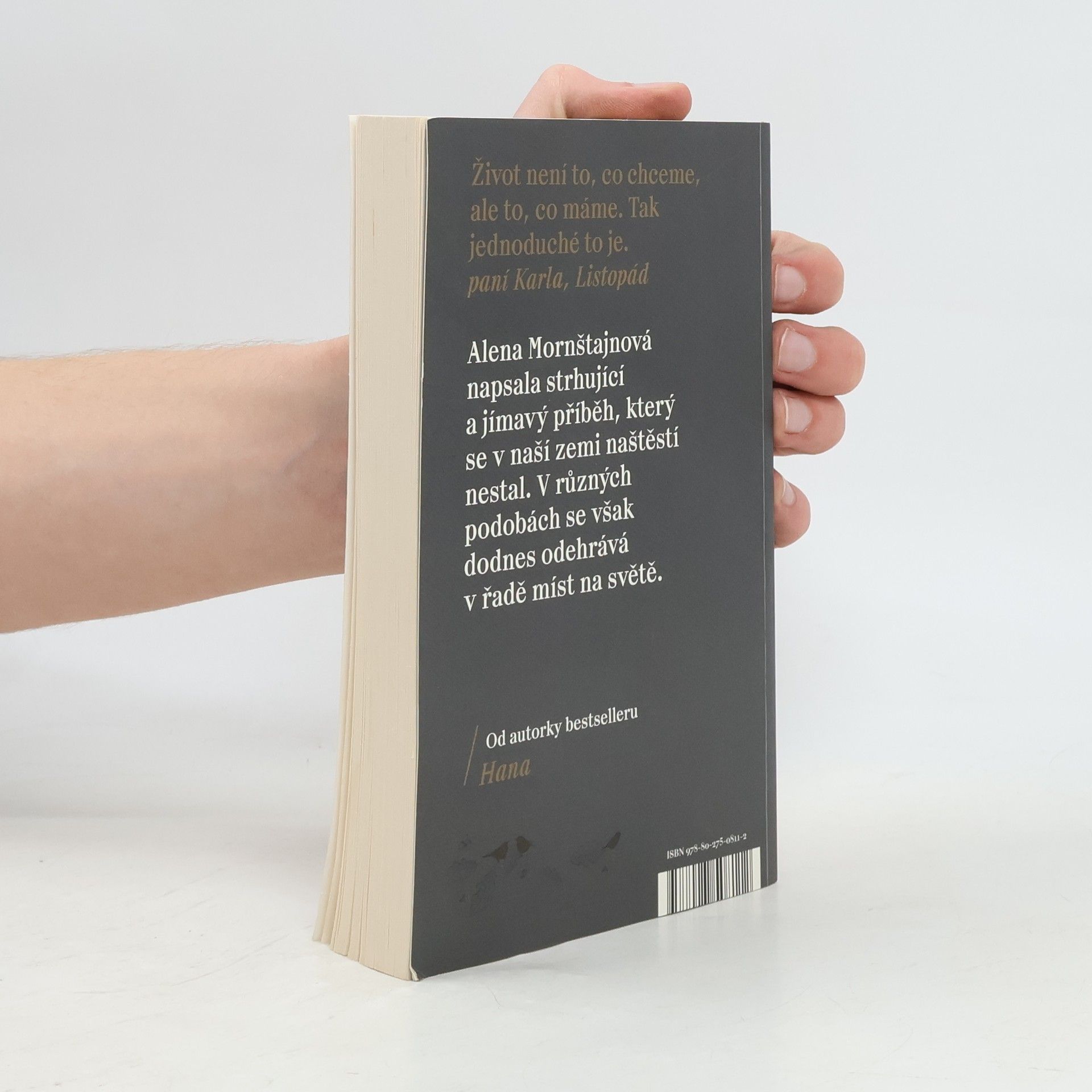 Ptali jste se někdy sami sebe, jaký by byl váš život, kdyby v listopadu 1989 dopadlo všechno jinak? Jaké by byly naše osudy, kdyby komunismus neskončil a my zůstali za železnou oponou oddělující nás od světa i jeden od druhého? Jedna z nejúspěšnějších českých spisovatelek Alena Mornštajnová opět překvapuje. Její nový román je dramatickým příběhem obyčejné rodiny, kterou velké dějiny jedné listopadové noci rozdělí a postaví proti sobě. Sledujeme příběh Marie Hajné, která je kvůli účasti na demonstracích zatčena a odsouzena ke dvaceti letům vězení. Ví, že už nejspíš nikdy neuvidí vyrůstat své děti, a při životě ji udržují jen dopisy. A taky naděje, že se nakonec přece jen shledají. Vedle toho se odvíjí příběh dívenky Magdaleny, která je odebrána rodičům a umístěna do „ozdravovny“, v níž se vychovávají nové komunistické kádry. Jejich osudy se jednoho dne protnou, ale zcela jinak, než si obě představovaly a přály. Od autorky bestselleru Hana.