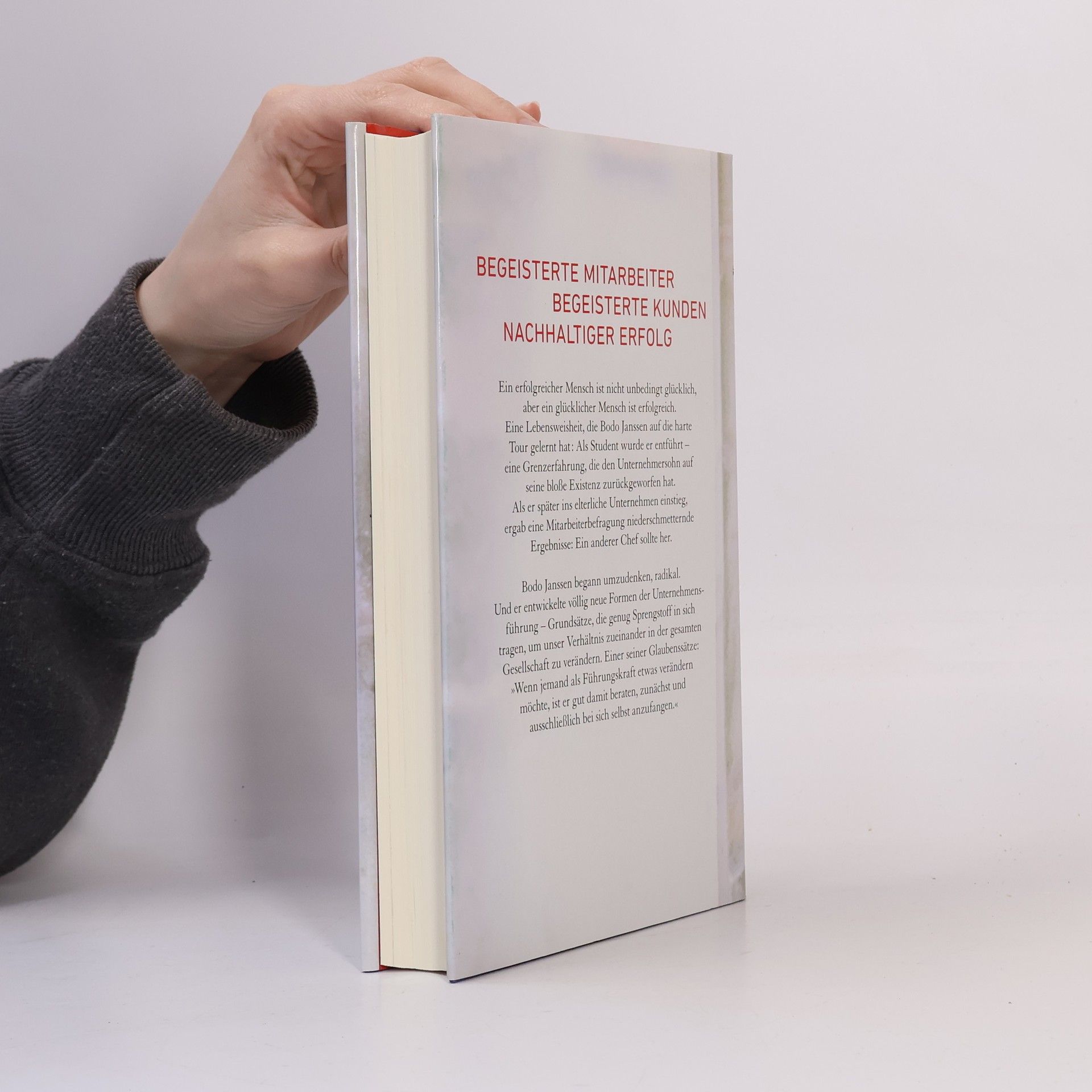 Führung ist Dienstleistung und kein Privileg Ein erfolgreicher Mensch ist nicht unbedingt glücklich, aber ein glücklicher Mensch ist erfolgreich. Eine Lebensweisheit, die Bodo Janssen auf die harte Tour gelernt hat: Als Student wurde er entführt – eine Grenzerfahrung, die den Unternehmersohn auf seine schiere Existenz zurückgeworfen hat. Als er später ins elterliche Unternehmen einstieg, ergab eine Mitarbeiterbefragung niederschmetternde Ergebnisse: ein anderer Chef sollte her. Bodo Janssen begann umzudenken, radikal. Und er entwickelte völlig neue Formen der Unternehmensführung – Grundsätze, die genug Sprengstoff in sich tragen, um unser Verhältnis zueinander in der gesamten Gesellschaft zu verändern. Einer seiner Glaubenssätze: »Wenn jemand als Führungskraft etwas verändern möchte, ist er gut damit beraten, zunächst und ausschließlich bei sich selbst anzufangen.«