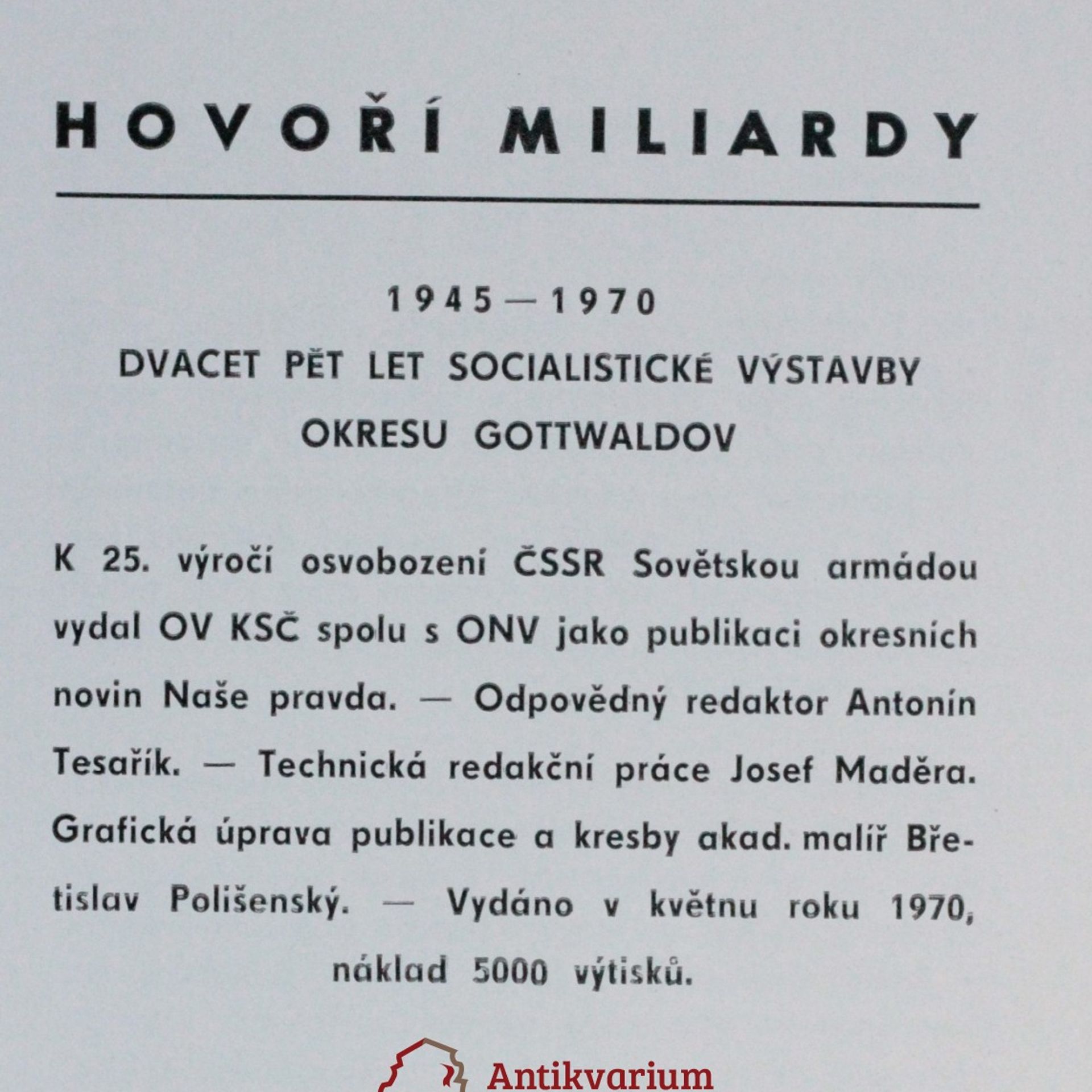Hovoří miliardy 1945-1970, dvacet pět let socialistické výstavby okresu Gottwaldov, AA.VV.