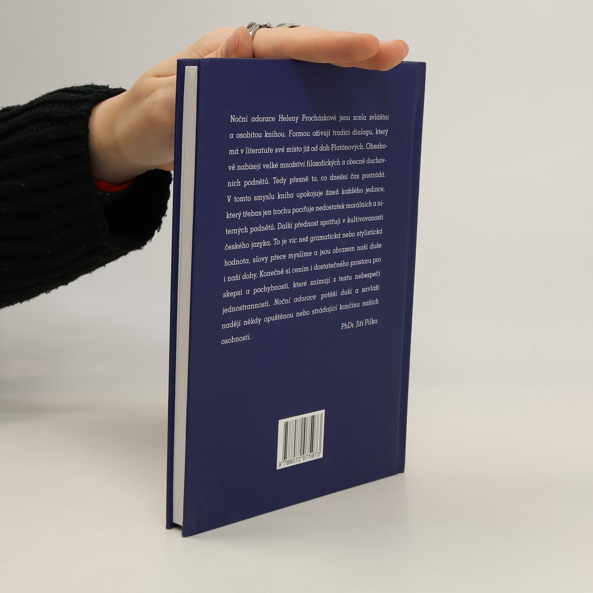 Noční adorace jsou zcela zvlaštní a osobitou knihou. Formou oživují tradici dialogu, který má v literatuře své místo již od dob Platónových. Obsahově nabízejí velké množství filozofických a obecně duchovních podnětů. PhDr. Jiří Pilka