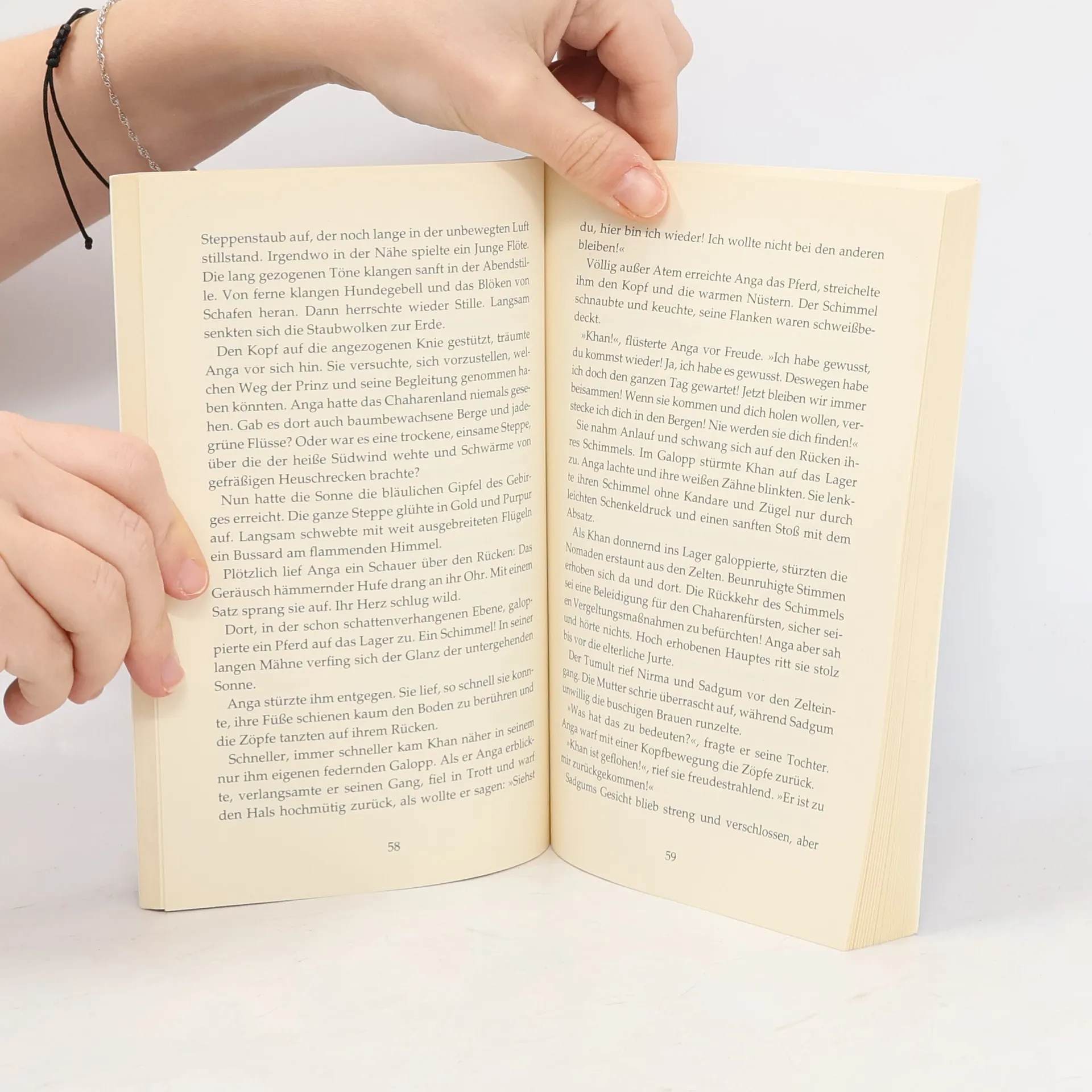 Unter dem Einsatz ihres Lebens rettet Anga den verletzten Schimmel Khan. Anga würde das edle Tier gerne behalten, doch Bantje, Sohn des mächtigen Mongolenfürsten, erkennt in Khan sein Pferd. Die beiden beschließen, um den Schimmel zu kämpfen, doch noch vor dem Ende des Wettkampfs bricht ein gewaltiges Erdbeben aus …