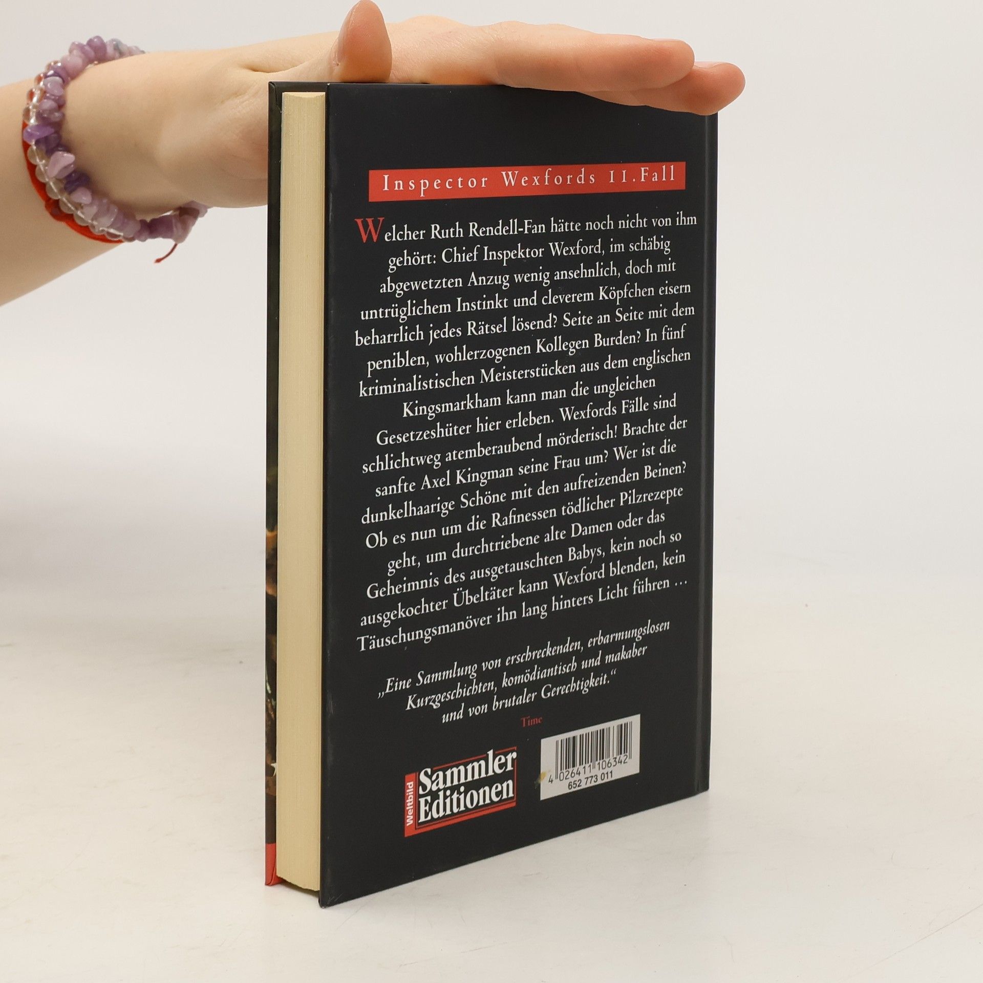 In der Kurzgeschichte „Die Wege des Bösen“ erhalten Chief Inspector Wexford und sein Kollege Mike Burden die Nachricht vom Tod der manisch-depressiven Hannah Kingham, die sich vom Balkon ihrer Wohnung gestürzt hat. Zunächst scheint es ein Selbstmord zu sein. Doch bald darauf erscheint Hannahs Bruder auf der Polizeistation und beschuldigt ihren Ehemann, sie ermordet zu haben. Er behauptet, Axel Kingham, ein Ernährungsfanatiker und Reformhausbesitzer, habe nicht nur seine Frau hinuntergestürzt, sondern auch versucht, sie zuvor zu vergiften. Bei einem gemeinsamen Pilzessen, an dem auch Kinghams geschiedene Frau und Hannahs Bruder teilnahmen, soll Axel giftige Pilze ins Essen gemischt haben. Hannah reagierte jedoch nur mit einer Magenverstimmung auf das Essen. Chief Inspector Wexford nimmt den Fall erneut auf und stellt sich die Frage, ob der Ehemann tatsächlich der Mörder ist oder ob es sich um eine Ablenkung vom wahren Täter handelt. „Ruth Rendell gehört ohne Zweifel zu den bedeutendsten Romanautoren englischer Sprache. Ihre Bücher sollte jeder lesen, der exzellente Krimis schätzt oder hervorragende Literatur.“ – Scott Turow „Ruth Rendells Romane sind ein Spiegel aller Spielarten menschlicher Schwächen und Täuschungsmanöver.“ – Donna Leon „Der Name Ruth Rendell steht seit dreißig Jahren für psychologisch raffinierte, gesellschaftskritische und literarisch anspruchsvolle Spannungsliteratur.“