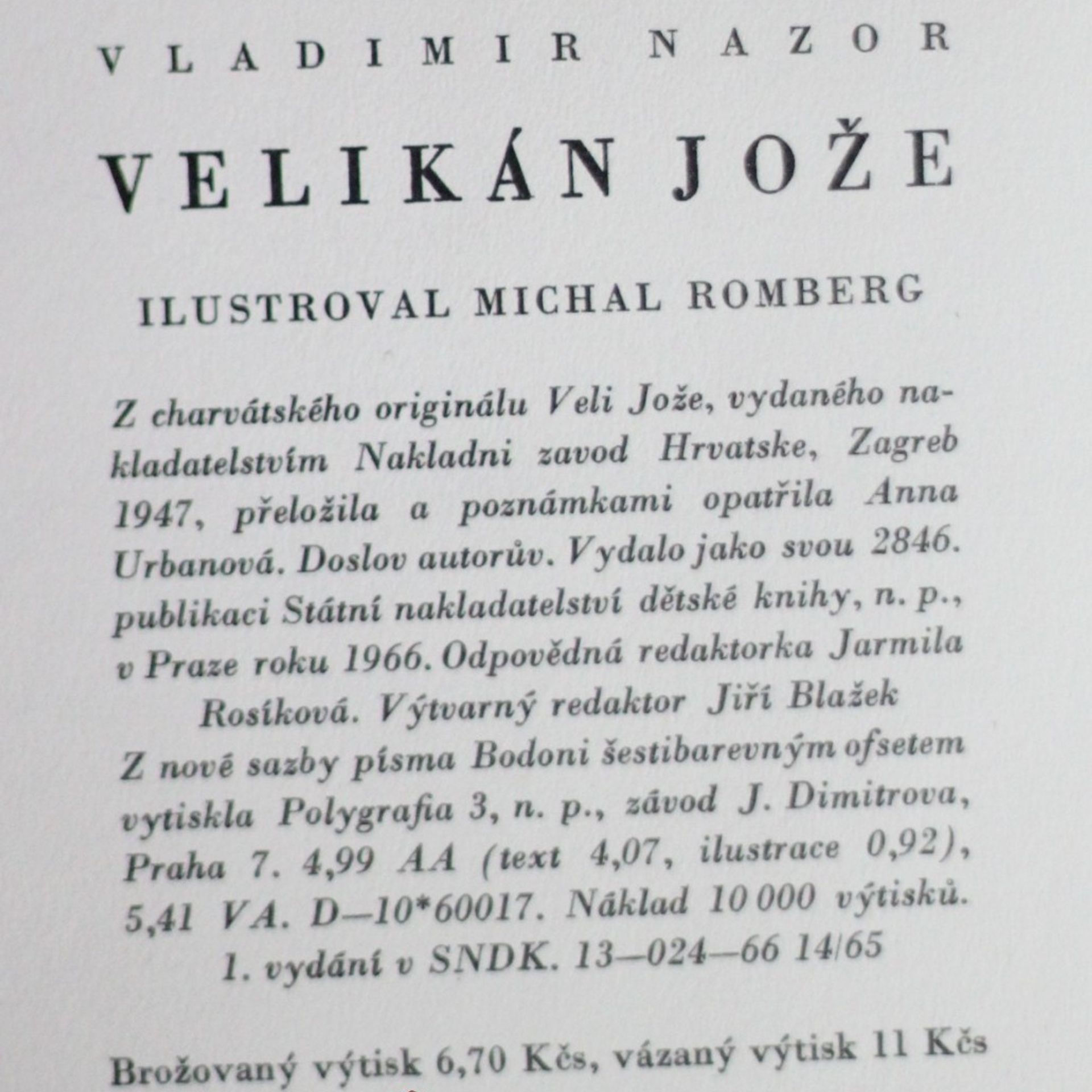Velikán Jože, Vladimir Nazor, Anna Urban, Michael Romberg