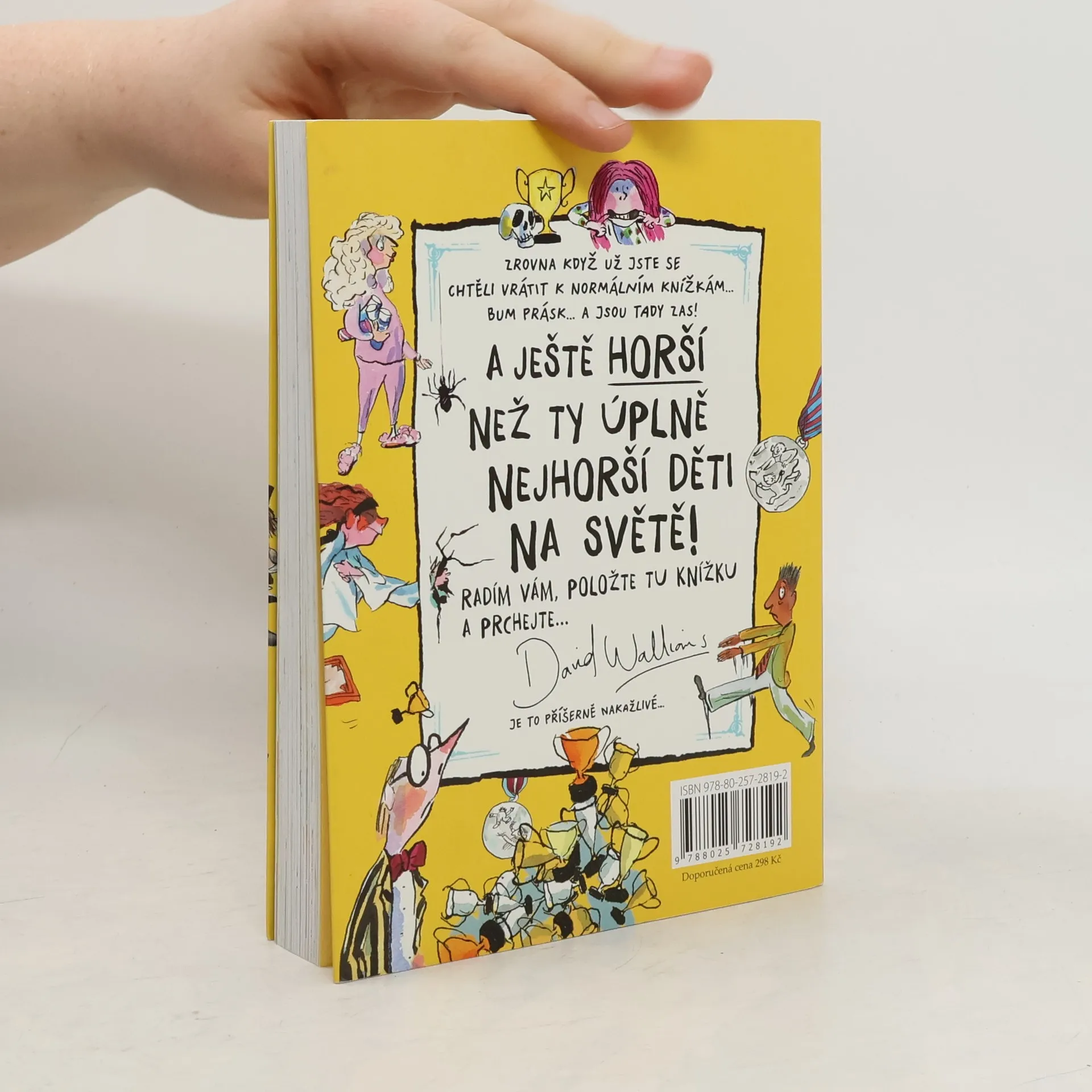 Zdá se, že zásoby dětských prohřešků, ničemností, ba zlořádů ještě zdaleka nejsou vyčerpány. David Walliams je opět s humorem sobě vlastním zmapoval, zapsal a pak je předal Tonymu Rossovi, aby k nim nakreslil spoustu vtipných ilustrací. A ejhle, na světě je nová kniha deseti příběhů o nejhorších dětech. Poznáte Vejtahu Vítězslava, Panovačnou Patricii, Jedovatého Jošta a mnoho dalších. Ale nebojte, i oni dostanou, co si zaslouží!