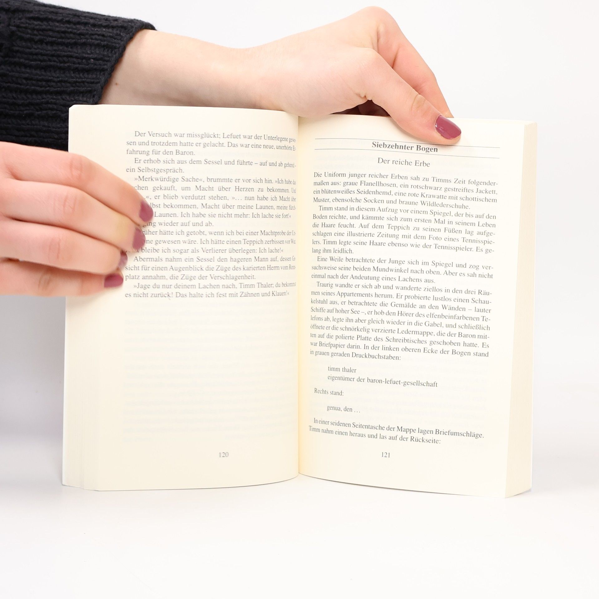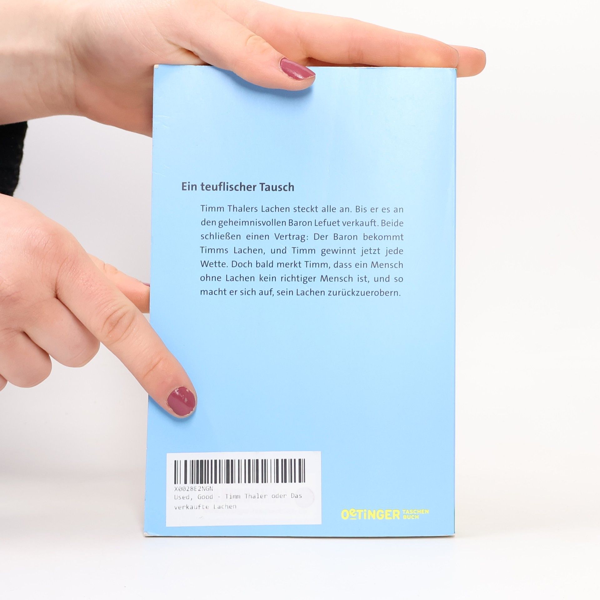 Eine abenteuerliche Wette: Timm Thalers wunderbares Lachen steckt alle an. Doch er verkauft es an den geheimnisvollen Baron Lefeut, der ihm dafür viel Geld verspricht: Der Baron erhält Timms Lachen, und Timm gewinnt ab jetzt jede Wette. Bald aber merkt Timm, dass ein Mensch ohne Lachen kein richtiger Mensch ist - gleich, wie viel Reichtum er anhäuft. Timm schmiedet einen Plan, wie er sein Lachen zurück erobern kann. Lefeut ist nicht leicht zu überlisten, aber Timm gibt nicht auf. Der mehrfach verfilmte Kinderbuch-Klassiker ist eine Parabel über den Umgang mit Macht und Geld. Spannendes Kinderbuch für die Ferien und andere Schmökerzeiten.