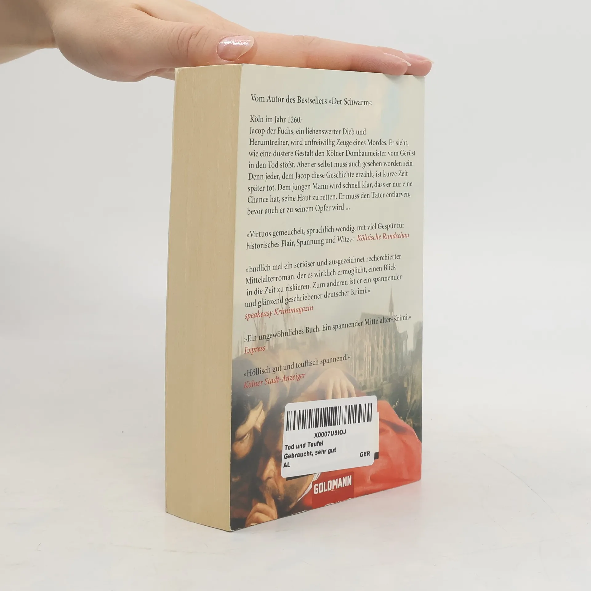 Köln im Jahr 1260: Jacop der Fuchs, ein liebenswerter Dieb und Herumtreiber, wird unfreiwillig Zeuge eines Mordes. Er sieht, wie eine düstere Gestalt den Kölner Dombaumeister vom Gerüst in den Tod stößt. Aber er selbst muss auch gesehen worden sein. Denn jeder, dem Jacop diese Geschichte erzählt, ist kurze Zeit später tot. Dem jungen Mann wird schnell klar, dass er nur eine Chance hat, seine Haut zu retten. Er muss den Täter entlarven, bevor auch er zu seinem Opfer wird ...