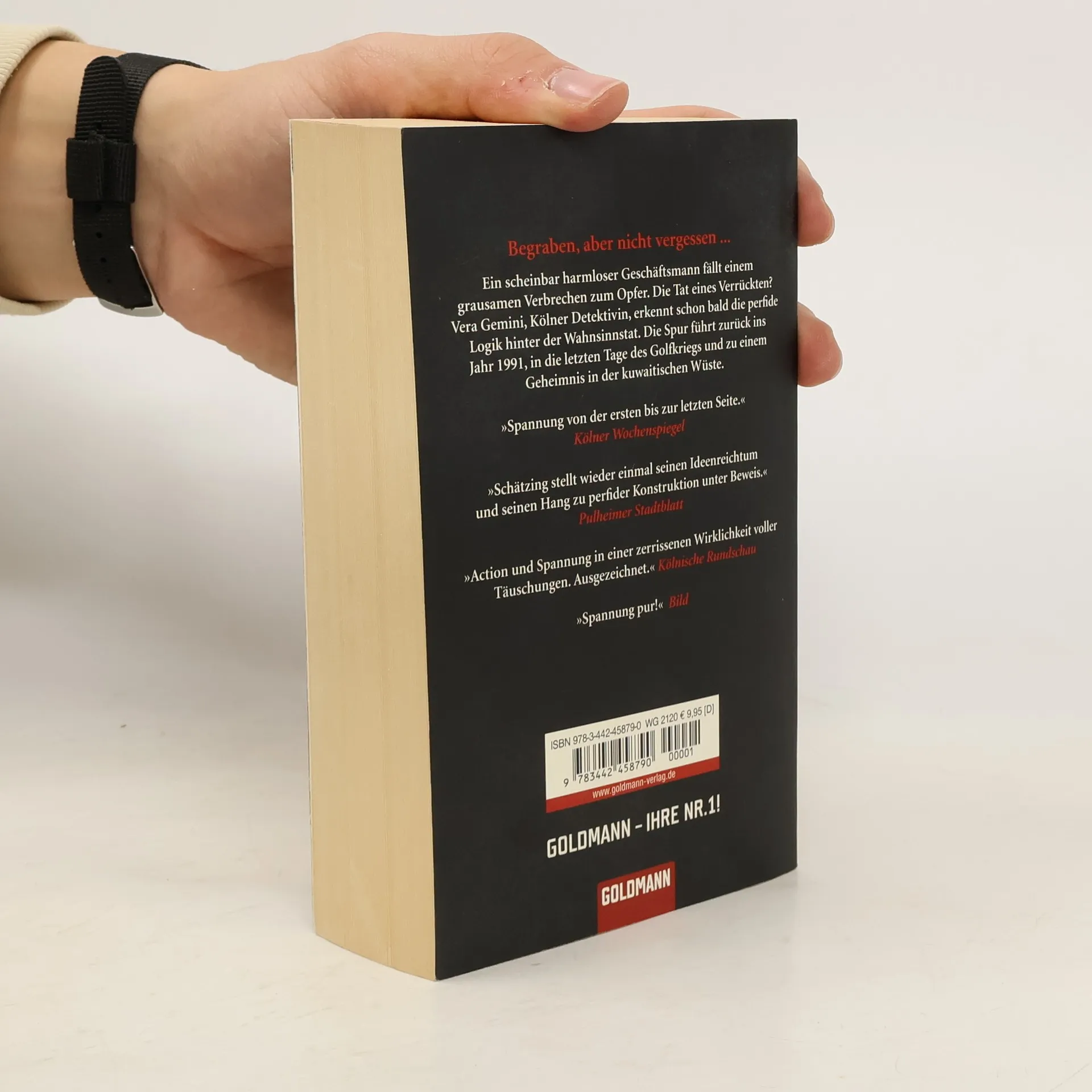Köln 1999: Ein scheinbar harmloser Geschäftsmann fällt einem grausamen Verbrechen zum Opfer. Die Tat eines Verrückten? Vera Gemini, Kölner Detektivin, die wider Willen in den Fall hineingezogen wird, erkennt schon bald die perfide Logik hinter der angeblichen Wahnsinnstat. Die Spur führt zurück ins Jahr 1991, in die letzten Tage des Golfkriegs und zu einem Geheimnis in der kuwaitischen Wüste – begraben, aber nicht vergessen …