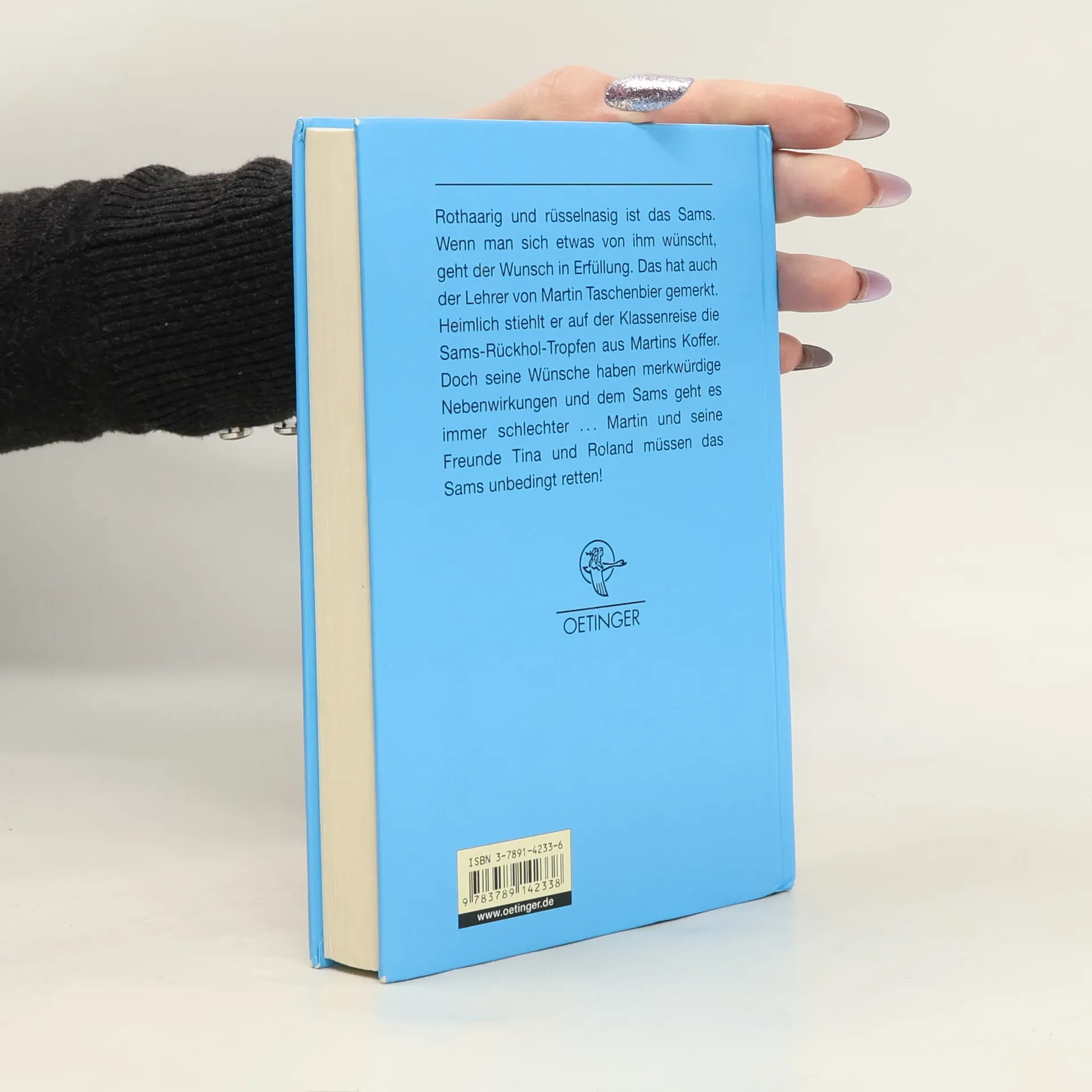Ich wünsche mir ... ein spannendes Sams, ein witziges Sams, ein funkelnagelneues Sams! Hätte Martin Taschenbier das Sams und die Sams-Rückholtropfen bloß nicht mit auf seine Klassenreise genommen! Denn sein Lehrer stiehlt die Tropfen und eignet sich das Sams an. Aber das geht nicht so einfach, denn das Sams gehört nun mal zur Familie Taschenbier. Wünscht sich jemand anders etwas von ihm, haben seine Wünsche unerwartete Nebenwirkungen. Und dem Sams selbst geht es dabei auch immer schlechter ... Also machen sich Martin und seine Freunde Tina und Roland auf, das Sams zu retten. Bis ihnen das gelingt, gibt es jedoch noch jede Menge Verwicklungen, Vertauschungen, Sams-Gedichte und hochkarätige Spannung! Die Bände der Sams-Reihe sind sowohl mit den Original-Illustrationen von Paul Maar erhältlich als auch modern interpretiert von Star-Illustration Nina Dulleck: Band 1: Eine Woche voller Samstage Band 2: Am Samstag kam das Sams zurück Band 3: Neue Punkte für das Sams Band 4: Ein Sams für Martin Taschenbier Band 5: Sams in Gefahr Band 6: Onkel Alwin und das Sams Band 7: Sams im Glück Band 8: Ein Sams zu viel Band 9: Das Sams feiert Weihnachten Band 10: Das Sams und der blaue Drache Band 11: Das Sams und die große Weihnachtssuche