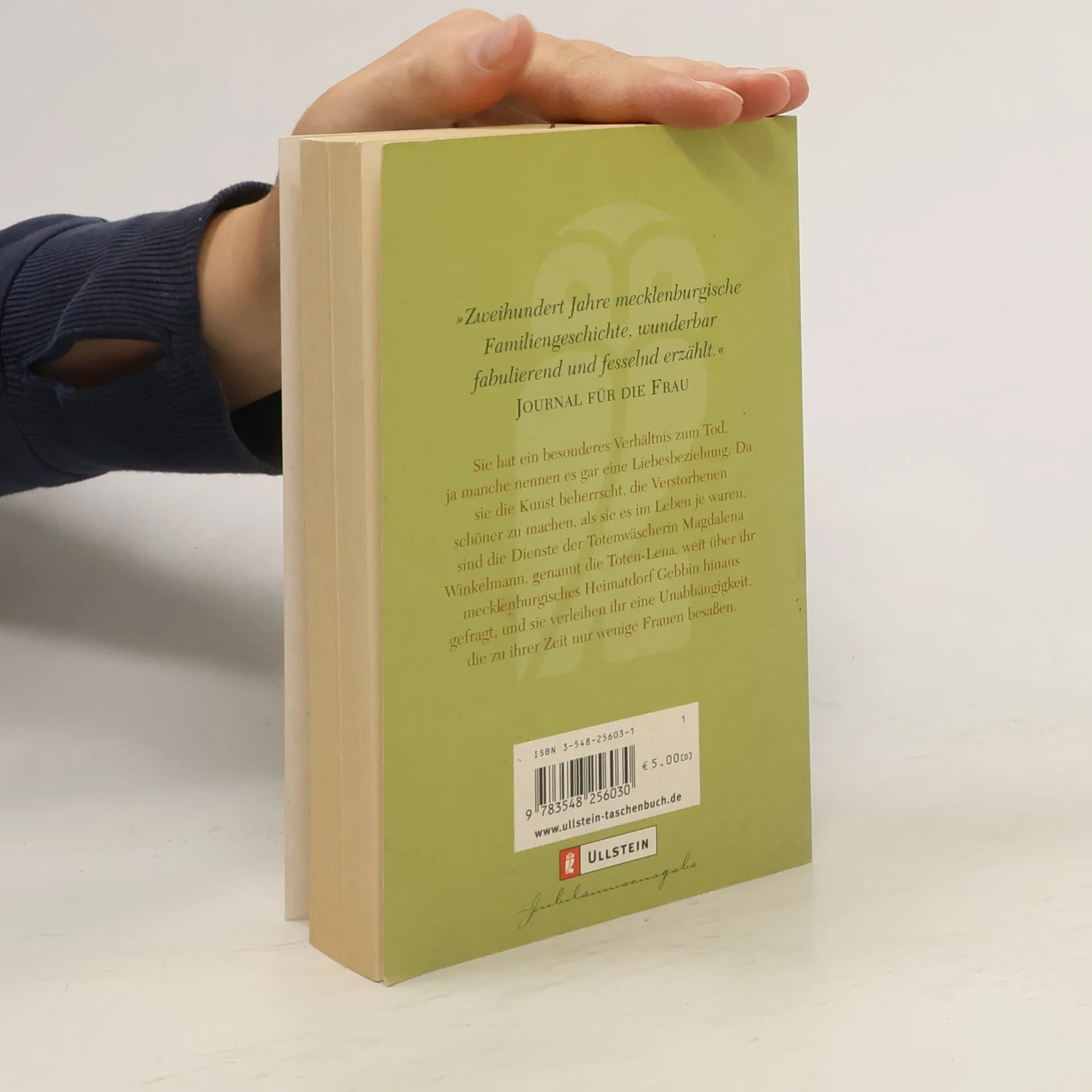 Sie hat ein besonderes Verhältnis zum Tod, ja manche nennen es gar eine Liebesbeziehung. Da sie die Kunst beherrscht, die Verstorbenen schöner zu machen, als sie es im Leben je waren, sind die Dienste der Totenwäscherin Magdalena Winkelmann, genannt die Toten-Lena, weit über ihr mecklenburgisches Heimatdorf Gebbin hinaus gefragt, und sie verleiht ihr eine Unabhängigkeit, die zu ihrer Zeit nur wenige Frauen besaßen.