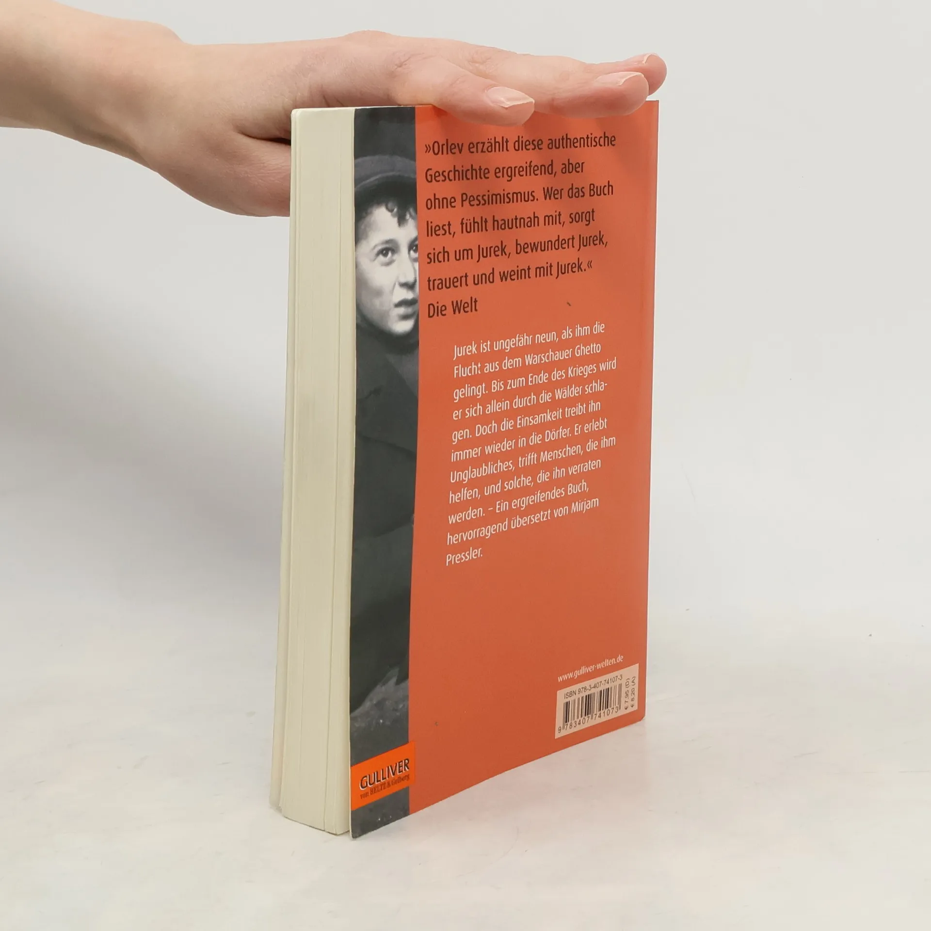 „Wie der kleine Jurek durch den Krieg kommt, das ist so ungeheuerlich wie im Simplizissimus: Er hat ein wenig Glück in einer grausamen Welt. Seine Flucht gibt Menschen Gelegenheit sich gut oder böse zu verhalten. Eine Lehre, herzerweichend.“ BuchMarkt Jurek ist ungefähr neun, als ihm die Flucht aus dem Warschauer Ghetto gelingt und er sich allein durch die Wälder schlagen muss, bis zum Ende des Krieges. Er lernt, wie man auf Bäumen schläft und mit der Schleuder Eichhörnchen erlegt. Doch die Einsamkeit treibt ihn immer wieder in die Dörfer. Dort trifft Jurek Menschen, die ihm helfen, und solche, die ihn verraten werden. Ein ergreifendes Buch, das auf einer authentischen Geschichte basiert.