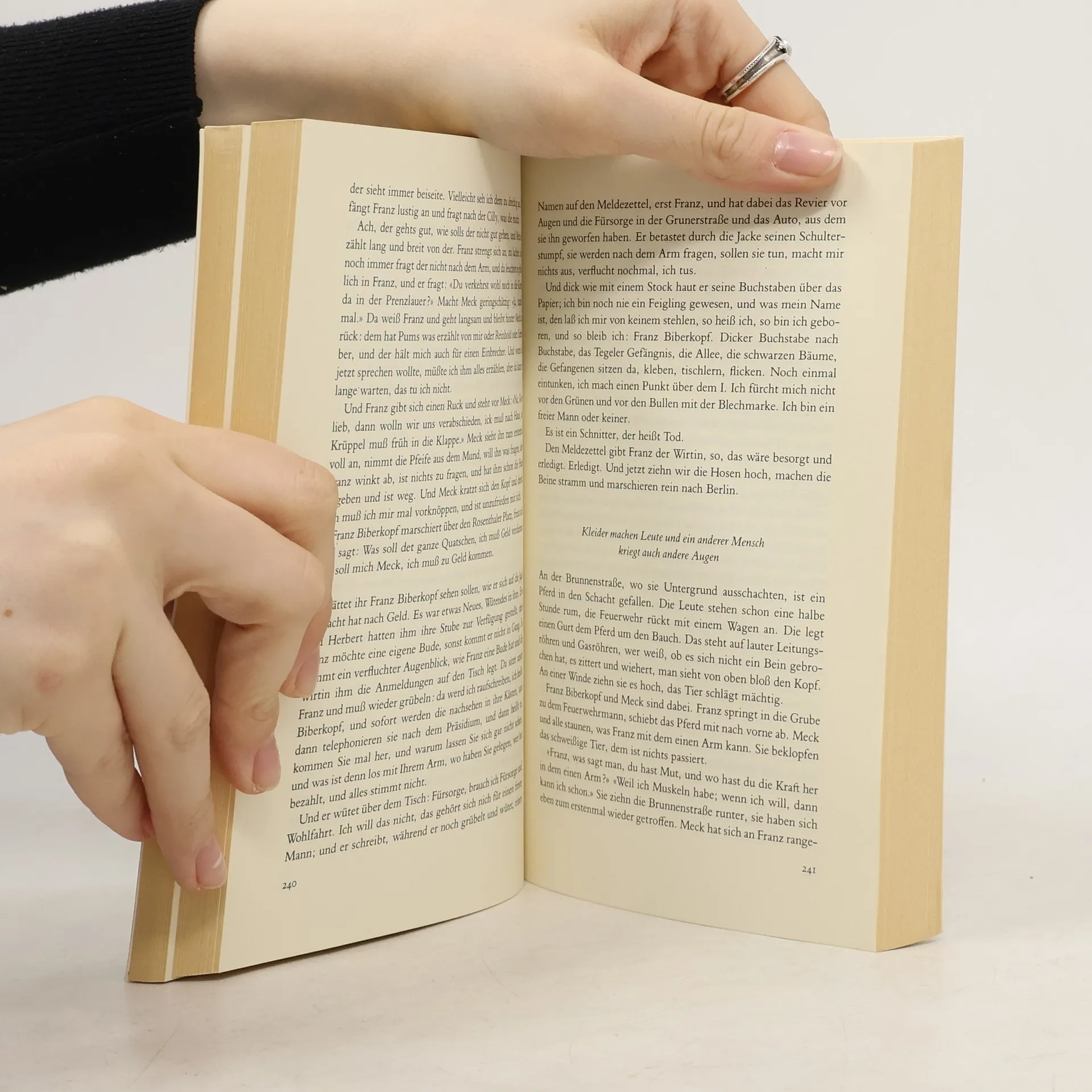 Biberkopf hat geschworen, er will anständig sein, und ihr habt gesehen, wie er wochenlang anständig ist, aber das war gewissermaßen nur eine Gnadenfrist. Das Leben findet das auf die Dauer zu fein und stellt ihm hinterlistig ein Bein. Die Geschichte des Transportarbeiters Franz Biberkopf, der, aus der Strafanstalt Berlin-Tegel entlassen, als ehrlicher Mann ins Leben zurückfinden möchte, ist der erste deutsche Großstadtroman von literarischem Rang. Das Berlin der Zwanziger Jahre ist der Schauplatz des Geschehens. Dabei wird die Großstadt selbst zum Gegenspieler des gutmütig-jähzornigen Franz Biberkopf, der dieser verlockenden, aber auch unerbittlichen Welt zu trotzen versucht. Mit Berlin Alexanderplatz vollzog Döblin die radikale Abkehr vom bürgerlich psychologischen Roman. Hier wurde kein Einzelschicksal analysiert. Das kollektive Geschehen, das Allgemeine einer menschlichen Situation erfuhr hier eine gültige dichterische Gestaltung. Der Roman zählt zu den großen Epen unserer Zeit.