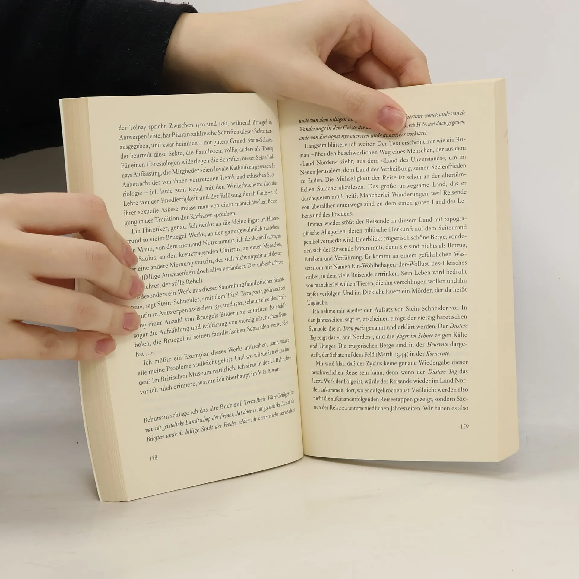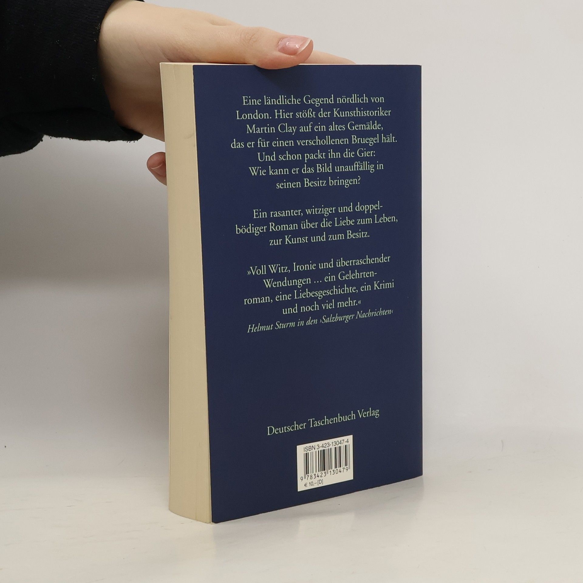 Ein eleganter, witziger und doppelbödiger Roman über die Liebe zum Leben, zur Kunst und zum Besitz. Der Kunsthistoriker Martin Clay zieht sich mit seiner Familie in ein Cottage nördlich von London zurück, um hier endlich sein Buch über den Einfluß des Nominalismus auf die niederländische Malerei des 15. Jahrhunderts zu beenden. Doch bei seinen neuen Nachbarn Tony und Laura Churt, verarmten Landedelleuten, findet er unter allerhand Gerümpel etwas, was ihn sein Vorhaben ganz vergessen lässt: das Bild der Bilder, verschmutzt und kaum erkennbar, aber – er weiß es instinktiv und mit großer Sicherheit – ein verlorengegangener Breugel. Martin setzt alles daran, Beweise für seine Vermutung zu finden, und zwar unter größter Geheimhaltung. Er muss das Gemälde an sich zu bringen, ohne daß der ahnungslose Besitzer Wind davon bekommt, was für einen Schatz er jahrelang als Kaminabdeckung verwendet hat. – Inzwischen wird Kate, Martins Frau, mißtrauisch: Daß er soviel Zeit bei den Nachbarn zubringt, schreibt sie vor allem der attraktiven jungen Laura zu.