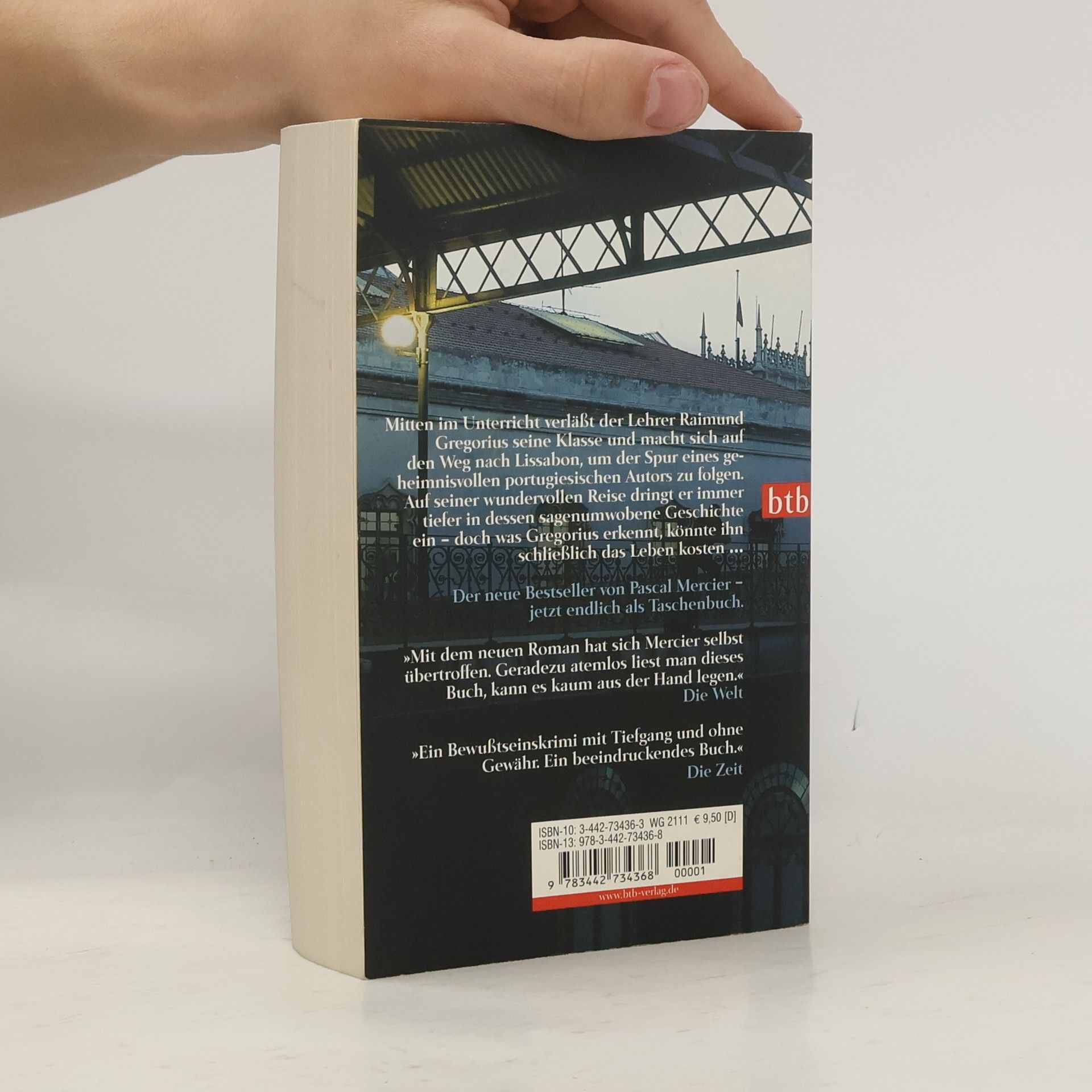 Mitten im Unterricht verlässt ein Lehrer seine Schule und macht sich auf den Weg nach Lissabon, um den Spuren eines geheimnisvollen Autors zu folgen. Immer tiefer zieht es ihn in dessen Aufzeichnungen und Reflexionen, immer mehr Menschen lernt er kennen, die von diesem Mann, den ein dunkles Geheimnis umgibt, zutiefst beeindruckt waren. Eine wundervolle Reise – die vergeblich sein muss und deren Bedrohungen der Reisende nicht gewachsen ist. Endlich kann er wieder fühlen, endlich hat er von seinem Leben zwischen Büchern aufgeblickt – aber was er sieht, könnte ihn das Leben kosten …