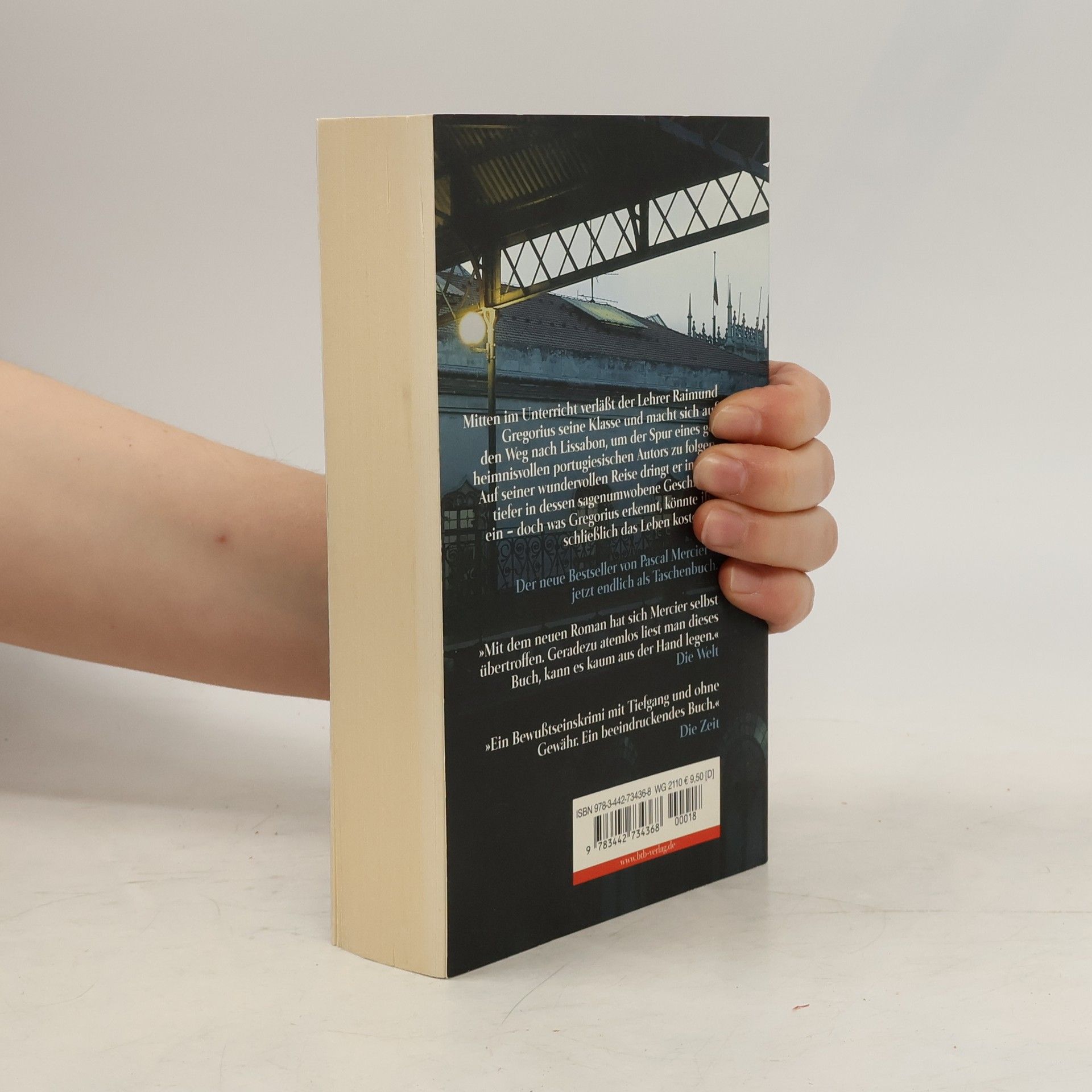 Mitten im Unterricht verlässt ein Lehrer seine Schule und macht sich auf den Weg nach Lissabon, um den Spuren eines geheimnisvollen Autors zu folgen. Immer tiefer zieht es ihn in dessen Aufzeichnungen und Reflexionen, immer mehr Menschen lernt er kennen, die von diesem Mann, den ein dunkles Geheimnis umgibt, zutiefst beeindruckt waren. Eine wundervolle Reise – die vergeblich sein muss und deren Bedrohungen der Reisende nicht gewachsen ist. Endlich kann er wieder fühlen, endlich hat er von seinem Leben zwischen Büchern aufgeblickt – aber was er sieht, könnte ihn das Leben kosten …