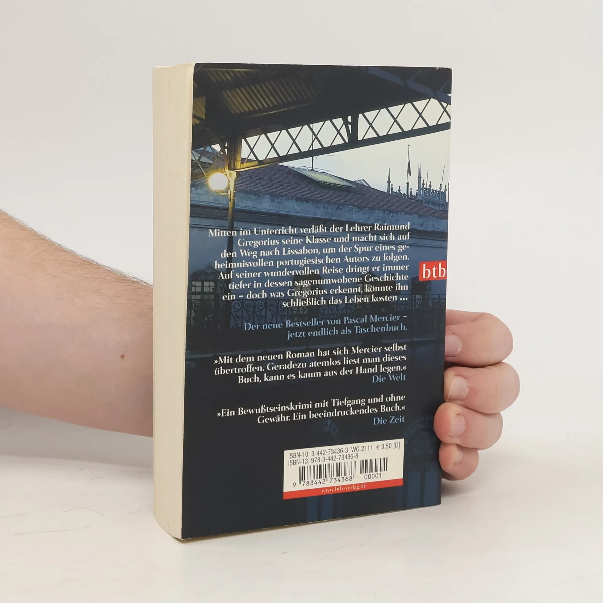 Mitten im Unterricht verlässt ein Lehrer seine Schule und macht sich auf den Weg nach Lissabon, um den Spuren eines geheimnisvollen Autors zu folgen. Immer tiefer zieht es ihn in dessen Aufzeichnungen und Reflexionen, immer mehr Menschen lernt er kennen, die von diesem Mann, den ein dunkles Geheimnis umgibt, zutiefst beeindruckt waren. Eine wundervolle Reise – die vergeblich sein muss und deren Bedrohungen der Reisende nicht gewachsen ist. Endlich kann er wieder fühlen, endlich hat er von seinem Leben zwischen Büchern aufgeblickt – aber was er sieht, könnte ihn das Leben kosten …
