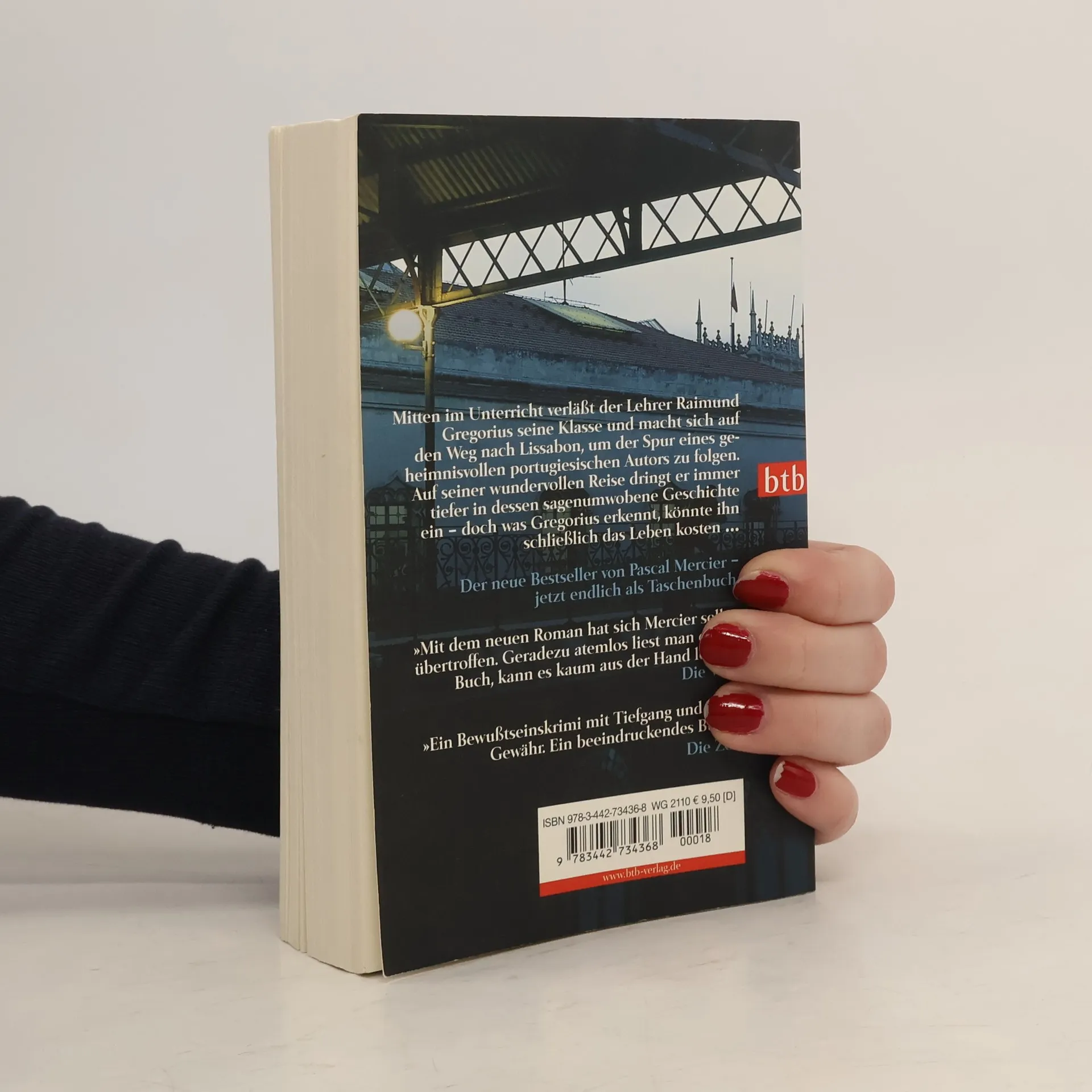Mitten im Unterricht verlässt ein Lehrer seine Schule und macht sich auf den Weg nach Lissabon, um den Spuren eines geheimnisvollen Autors zu folgen. Immer tiefer zieht es ihn in dessen Aufzeichnungen und Reflexionen, immer mehr Menschen lernt er kennen, die von diesem Mann, den ein dunkles Geheimnis umgibt, zutiefst beeindruckt waren. Eine wundervolle Reise – die vergeblich sein muss und deren Bedrohungen der Reisende nicht gewachsen ist. Endlich kann er wieder fühlen, endlich hat er von seinem Leben zwischen Büchern aufgeblickt – aber was er sieht, könnte ihn das Leben kosten …