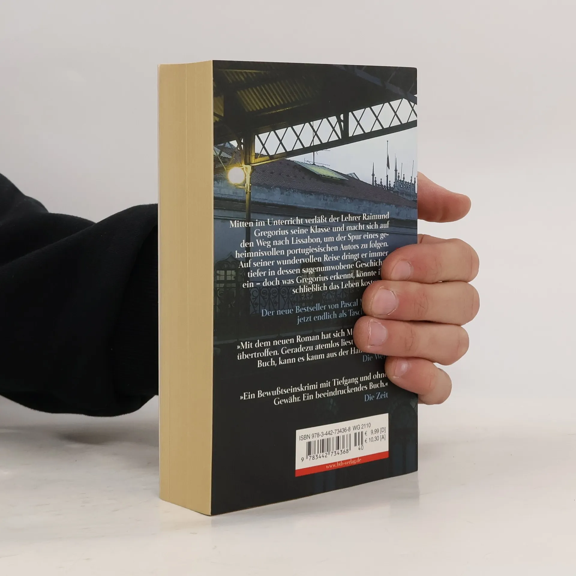 Mitten im Unterricht verlässt ein Lehrer seine Schule und macht sich auf den Weg nach Lissabon, um den Spuren eines geheimnisvollen Autors zu folgen. Immer tiefer zieht es ihn in dessen Aufzeichnungen und Reflexionen, immer mehr Menschen lernt er kennen, die von diesem Mann, den ein dunkles Geheimnis umgibt, zutiefst beeindruckt waren. Eine wundervolle Reise – die vergeblich sein muss und deren Bedrohungen der Reisende nicht gewachsen ist. Endlich kann er wieder fühlen, endlich hat er von seinem Leben zwischen Büchern aufgeblickt – aber was er sieht, könnte ihn das Leben kosten …