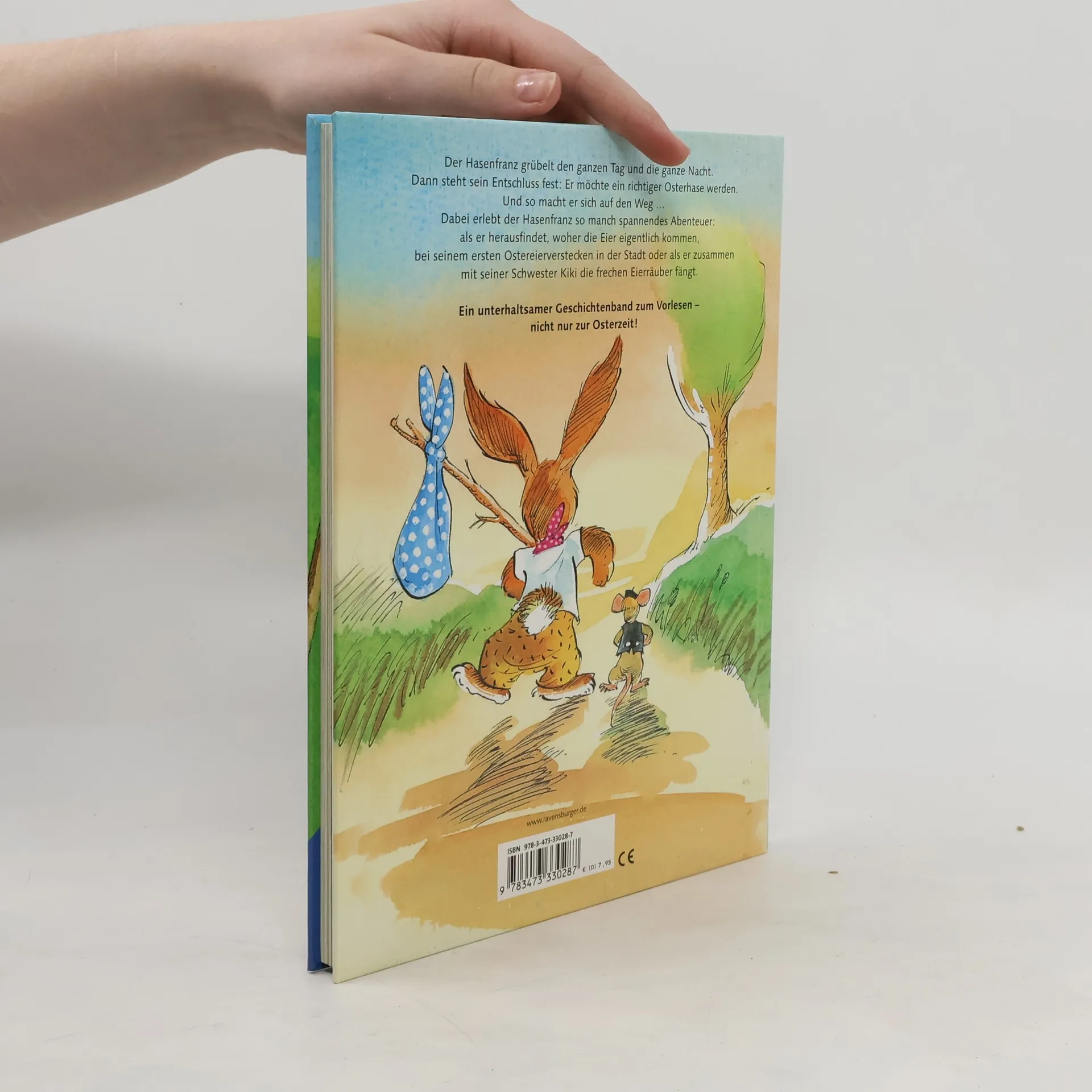 Endlich sind alle Abenteuer vom Hasenfranz in einem Sammelband zusammengefasst: Wie er lernt, woher die Eier kommen und wie der Hasenfranz mit seiner Familie die fertigen Osternester zu den Kindern in der Stadt bringt. Und schließlich die Geschichte, wie der Hasenfranz und seine Schwester Kiki gemeinen Eierdieben das Handwerk legen. Aufregende Ausflüge und spannende Abenteuer für das kleine Langohr! Ein humorvolles Geschichtenbuch für die Osterzeit.