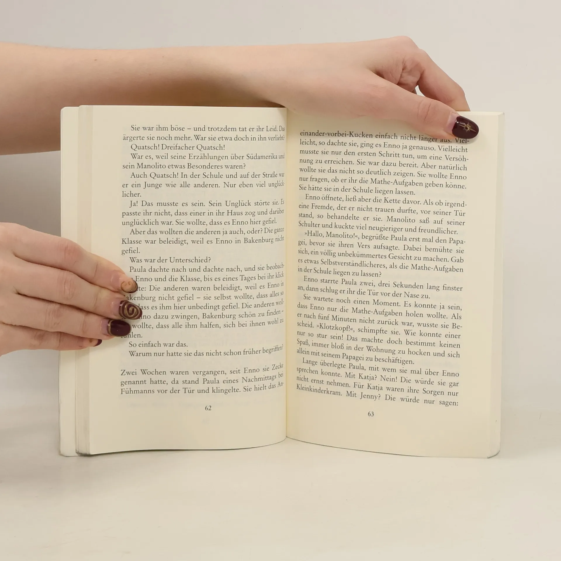 Paula kämpft mit Mut und Fantasie für einen Außenseiter.Nach den Sommerferien kommt ein neuer Mitschüler in Paulas Klasse: Enno. Er ist mit seinen Eltern und Papagei Manolito vor kurzem ins Nachbarhaus gezogen. Aufgewachsen ist Enno in Peru - da könnte er doch mal ein bisschen erzählen! Aber Enno spricht mit keinem und in der Schule stößt er auf massive Ablehnung. Es kommt sogar zu Prügeleien. Für Paula steht fest: Sie muss eingreifen und Enno verteidigen, auch wenn sie selbst dabei ins Abseits gerät.