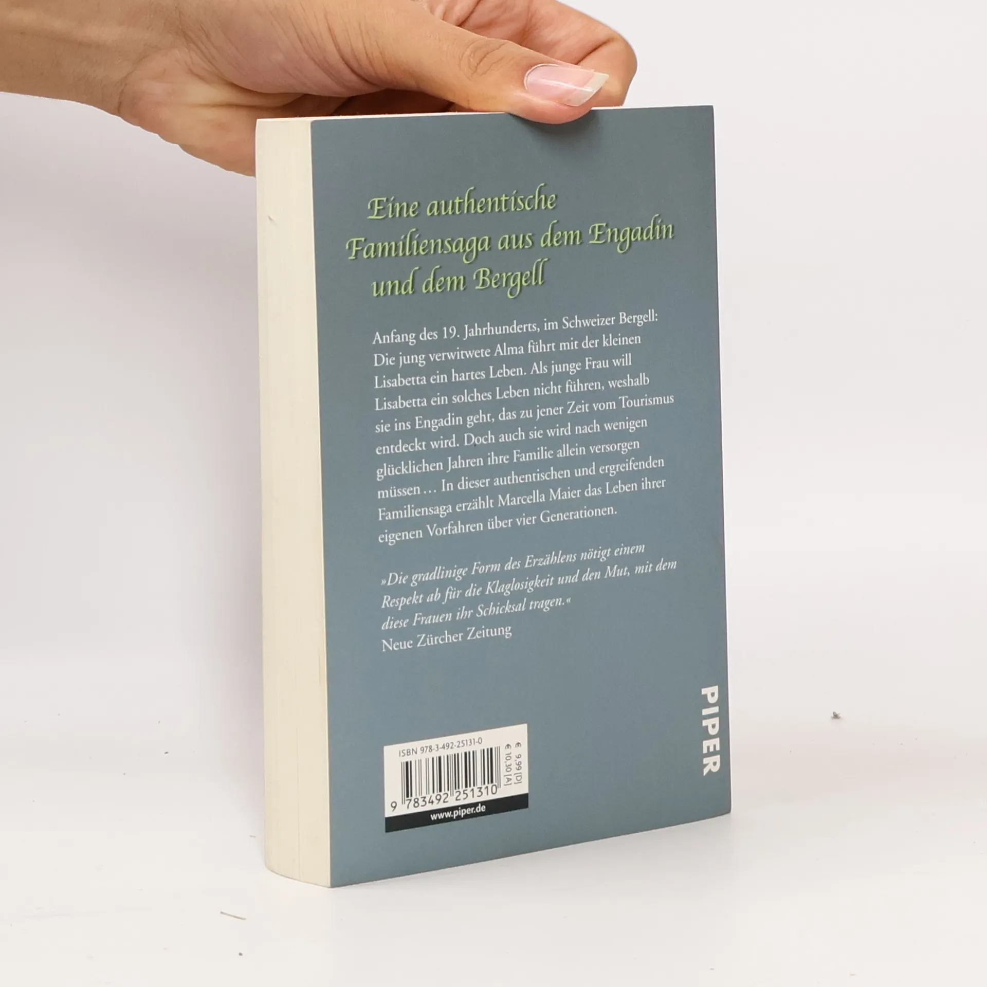 Anfang des 19. Jahrhunderts, im Schweizer Bergell: Die jung verwitwete Alma führt mit der kleinen Lisabetta ein hartes Leben. Als junge Frau will Lisabetta ein solches Leben nicht führen, weshalb sie ins Engadin geht, das zu jener Zeit vom Tourismus entdeckt wird. Doch auch sie wird nach wenigen glücklichen Jahren ihre Familie allein versorgen müssen … In dieser authentischen und ergreifenden Familiensaga erzählt Marcella Maier das Leben ihrer eigenen Vorfahren über vier Generationen.