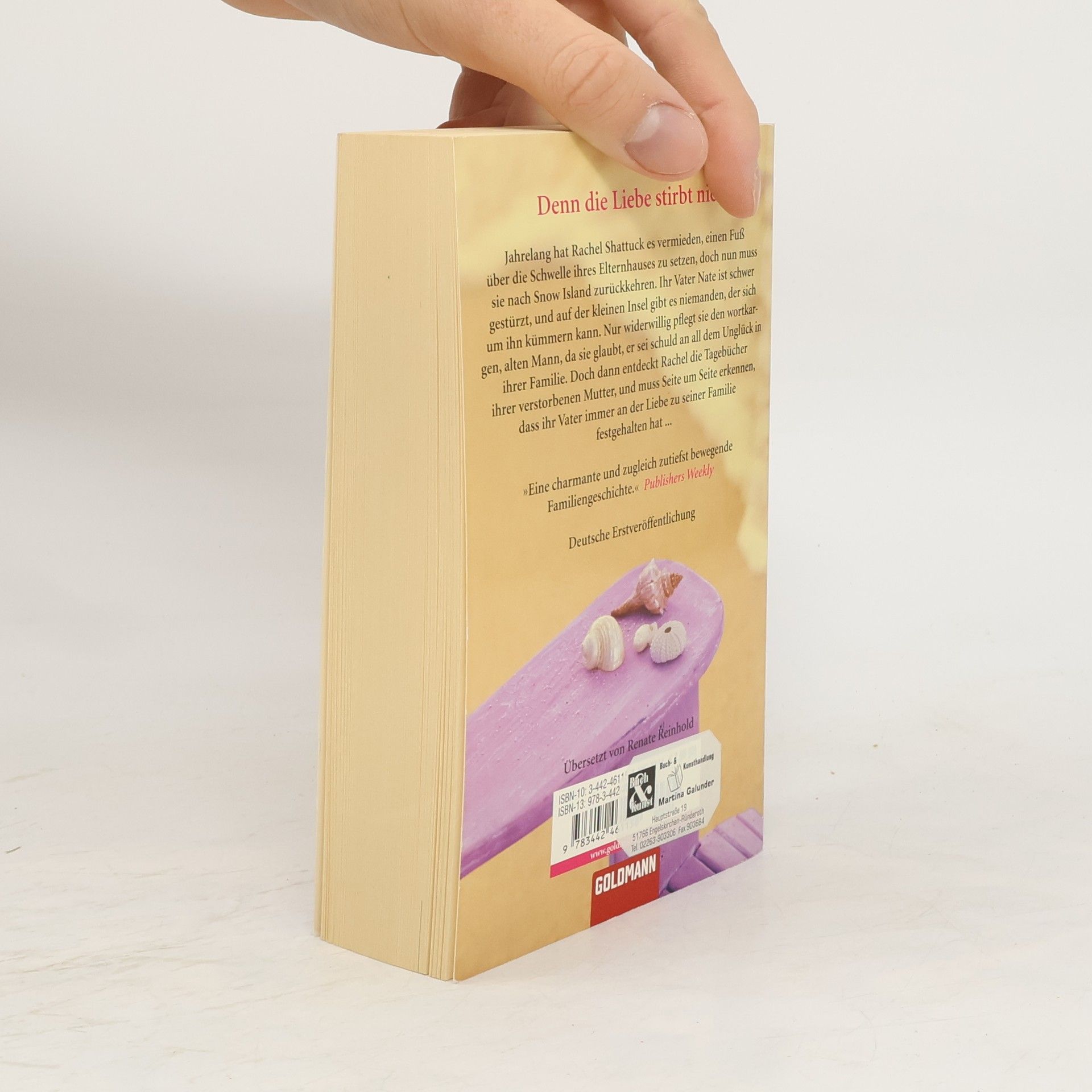 Die bewegende Geschichte einer jungen Frau, die im Tagebuch ihrer Mutter den Schlüssel zu ihrem eigenen Schicksal findet. Jahrelang hat Rachel Shattuck es vermieden, einen Fuß über die Schwelle ihres Elternhauses zu setzen, doch nun muss sie nach Snow Island zurückkehren. Ihr Vater Nate ist schwer gestürzt, und auf der kleinen Insel gibt es niemanden, der sich um ihn kümmern kann. Nur widerwillig pflegt sie den wortkargen, alten Mann, da sie glaubt, er sei schuld an all dem Unglück in ihrer Familie. Doch dann entdeckt Rachel die Tagebücher ihrer verstorbenen Mutter, und muss Seite um Seite erkennen, dass ihr Vater immer an der Liebe zu seiner Familie festgehalten hat.