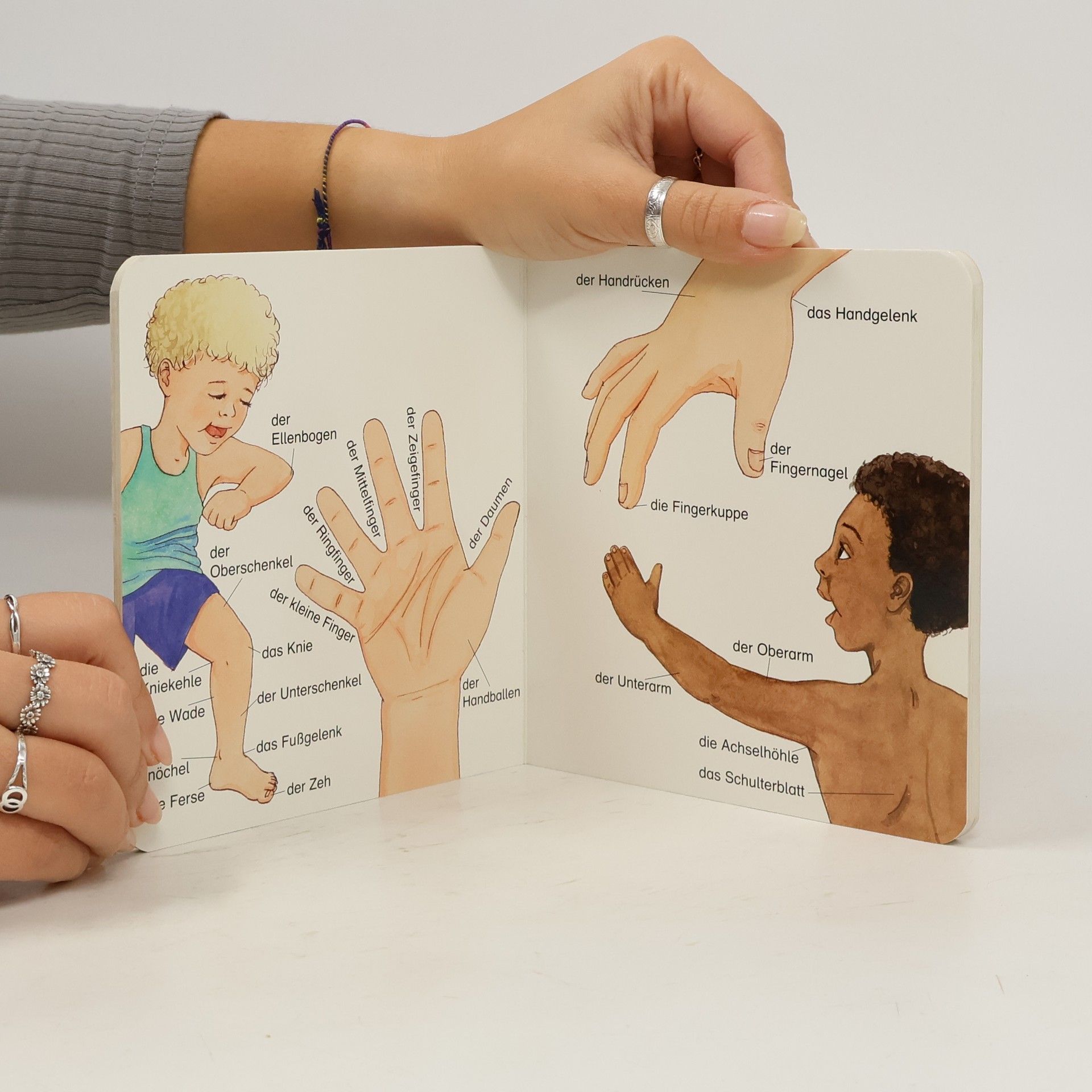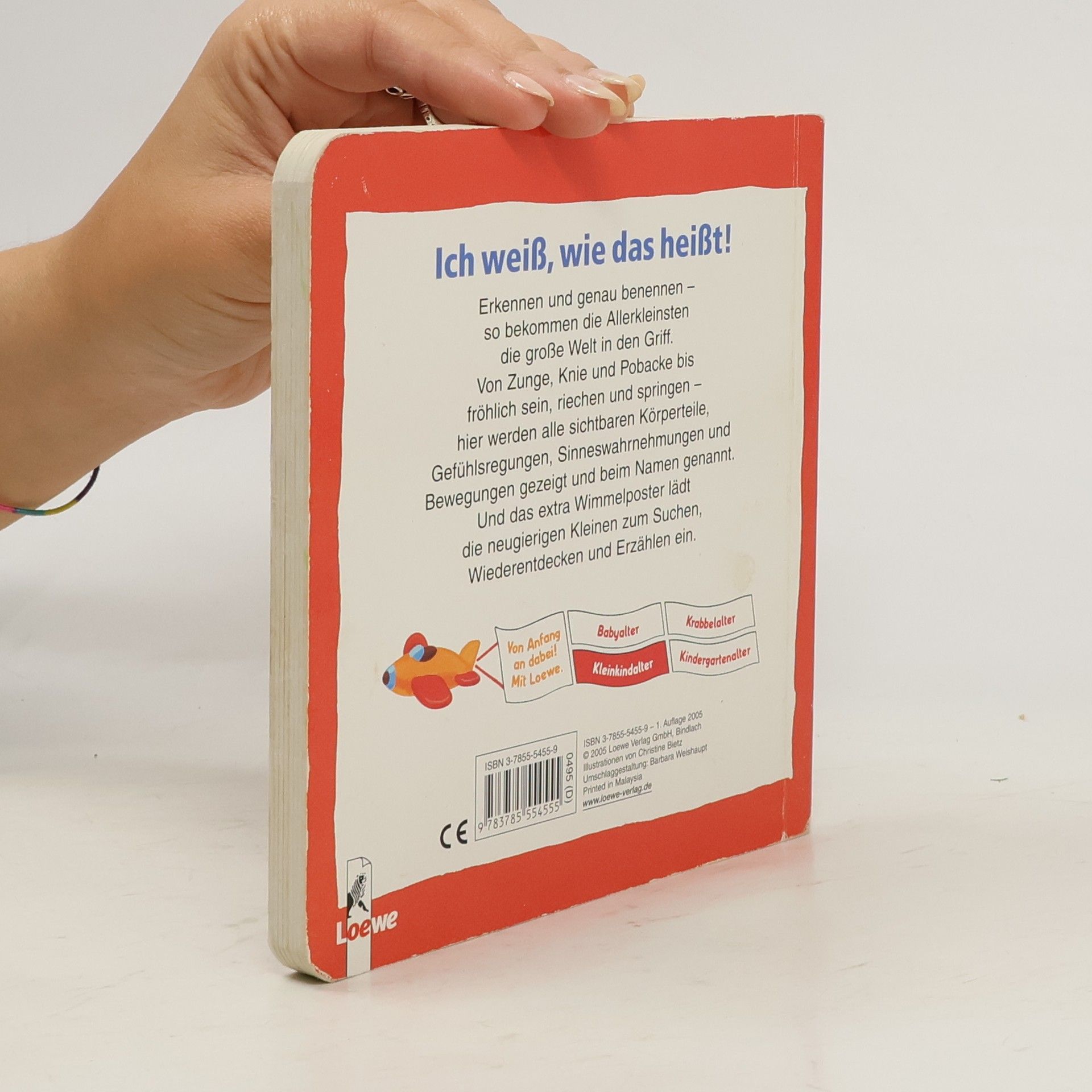 Erkennen und genau benennen – so bekommen die Allerkleinsten die große Welt in den Griff. Von Zunge, Knie und Pobacke bis fröhlich sein, riechen und springen – hier werden alle sichtbaren Körperteile, Gefühlsregungen, Sinneswahrnehmungen und Bewegungen gezeigt und beim Namen genannt. Und das extra Wimmelposter lädt die neugierigen Kleinen zum Suchen, Wiederentdecken und Erzählen ein.