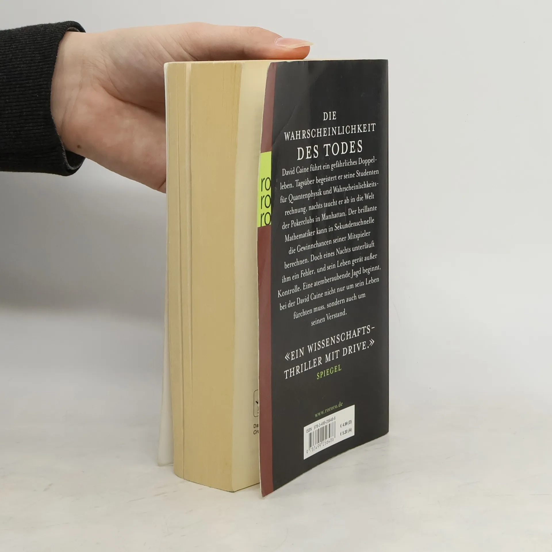 Die Wahrscheinlichkeit des Todes. David Caine führt ein gefährliches Doppelleben. Tagsüber begeistert er seine Studenten für Quantenphysik und Wahrscheinlichkeitsrechnung, nachts taucht er ab in die Welt der Pokerclubs in Manhattan. Der brillante Mathematiker kann in Sekundenschnelle die Gewinnchancen seiner Mitspieler berechnen. Doch eines Nachts unterläuft ihm ein Fehler, und sein Leben gerät außer Kontrolle. Eine atemberaubende Jagd beginnt, bei der David Caine nicht nur um sein Leben fürchten muss, sondern auch um seinen Verstand. «Ein Wissenschaftsthriller mit Drive.» (Spiegel)