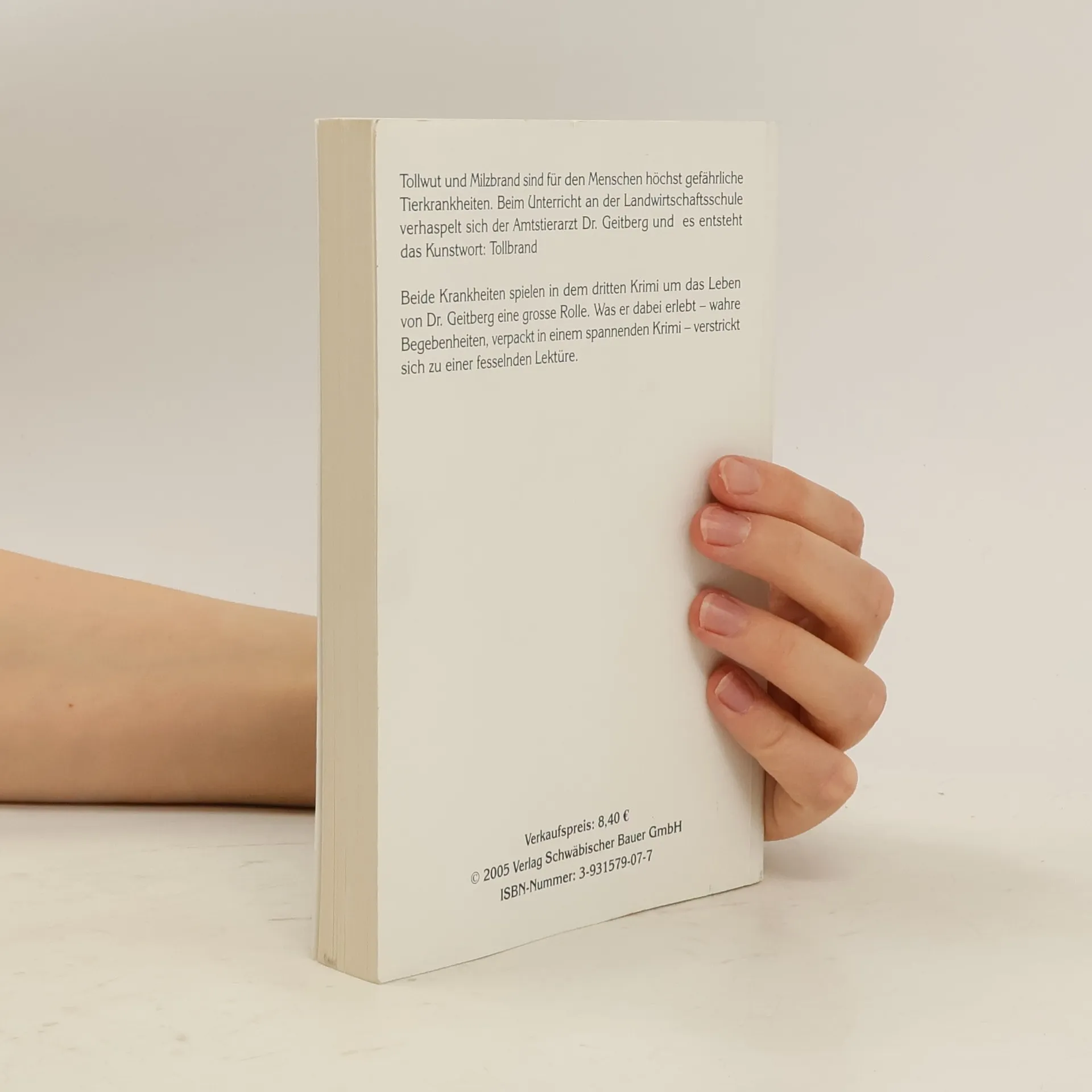 Tollwut und Milzbrand sind für den Menschen höchst gefährliche Tierkrankheiten. Beim Unterricht an der Landwirtschaftsschule verhaspelt sich der Amtstierarzt Dr. Geitberg und es entsteht das Kunstwort: Tollbrand Beide Krankheiten spielen in dem dritten Krimi um das Leben von Dr. Geitberg eine grosse Rolle. Was er dabei erlebt, wahre Begebenheiten, verpackt in einem spannenden Krimi, verstrickt sich zu einer fesselnden Lektüre.