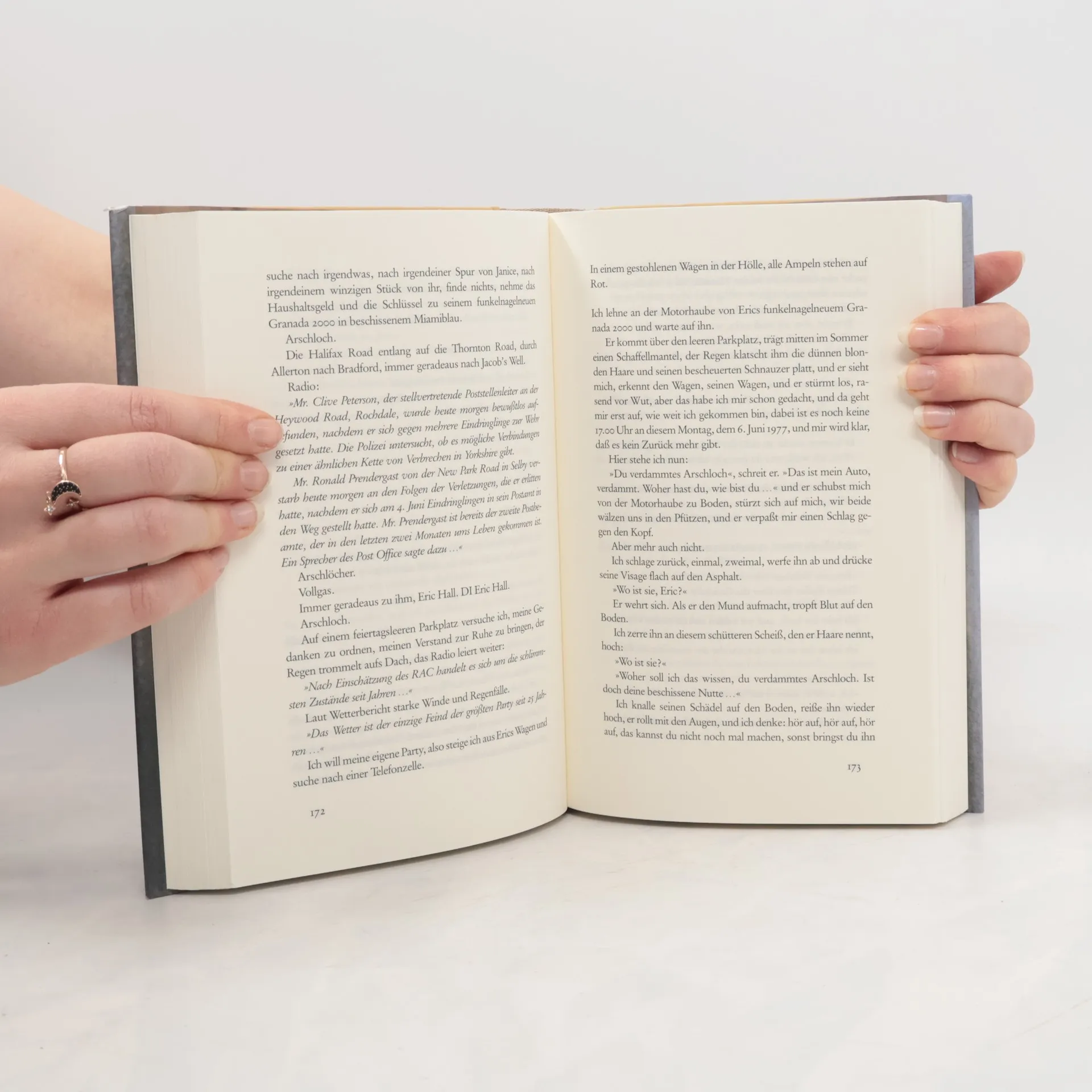 Yorkshire, 1977. Polizeisergeant Robert Fraser wird zu einer Sondereinheit abgestellt, die den grausamen Mord an einer Prostituierten aufklären soll. Bald schon werden Parallelen zu anderen Mordfällen aufgedeckt und die ersten Verdächtigen festgenommen. Noch bevor ein weiterer Prostituiertenmord die Öffentlichkeit in Angst und Schrecken versetzt, schaltet sich Jack Whitehead, Starreporter der Evening Post, in die Ermittlungen ein und versucht, auf eigene Faust den 'Yorkshire Ripper' zu stellen. Doch Fraser und Whitehead verstricken sich in ein Geflecht aus Intrigen, Korruption und tödlicher Gewalt. Denn die beiden teilen ein Laster, das ihnen zum Verhängnis werden kann: die Huren von Chapeltown. Temporeich und mit großer Leidenschaft erzählt David Peace von dunklen Obsessionen, vermeintlich rechtschaffenen Bürgern und einem tödlichen Spiel mit der Wahrheit. '1977' ist der zweite Teil des preisgekrönten Red Riding Quartetts, einer Chronik Englands in den siebziger und frühen achtziger Jahren, mit der David Peace zu einer der wichtigsten Stimmen der neuen englischen Literatur avancierte.