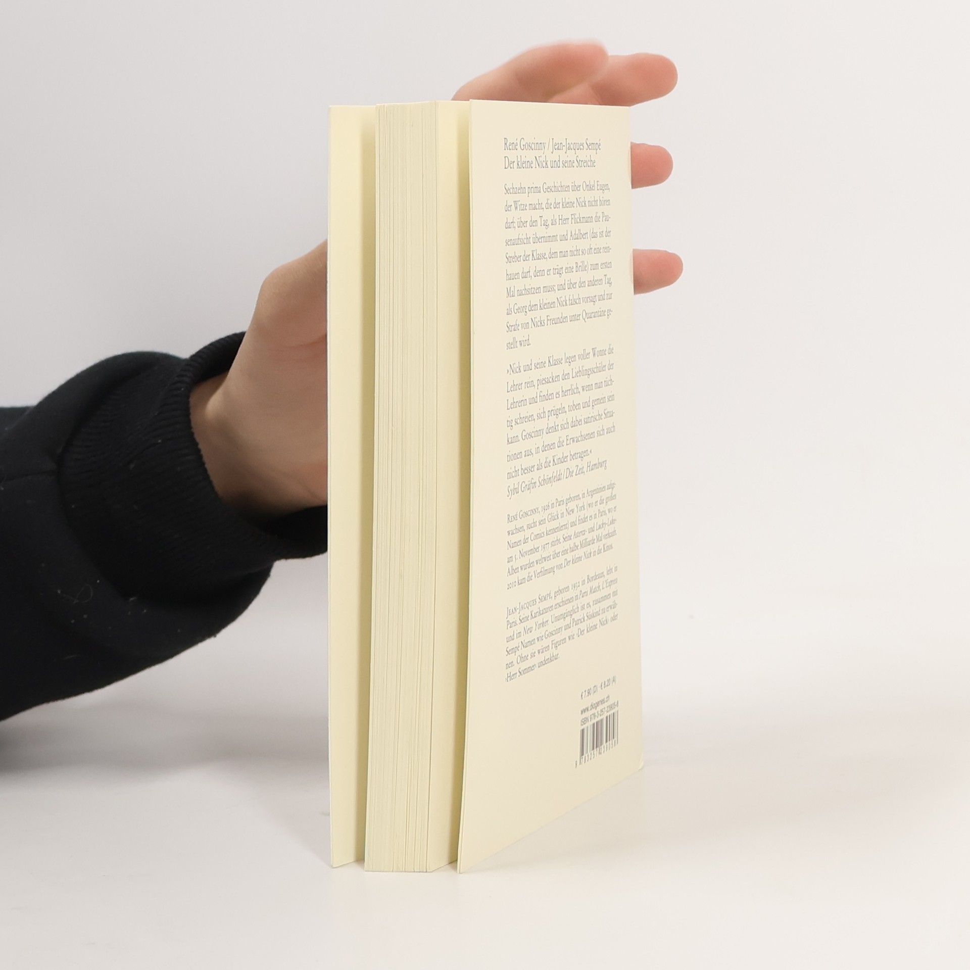 Sechzehn prima Geschichten über die Familienfeier, über Nicks neuen Babysitter und über Onkel Eugen, der Witze macht, die der kleine Nick nicht hören darf; über den Tag, als Herr Flickmann die Pausenaufsicht übernimmt und Adalbert (das ist der Streber der Klasse, dem man nicht so oft eine reinhauen darf, denn er trägt eine Brille) zum ersten Mal nachsitzen muss; und über den anderen Tag, als Georg dem kleinen Nick falsch vorsagt und dann von den Freunden unter Quarantäne gestellt wird.