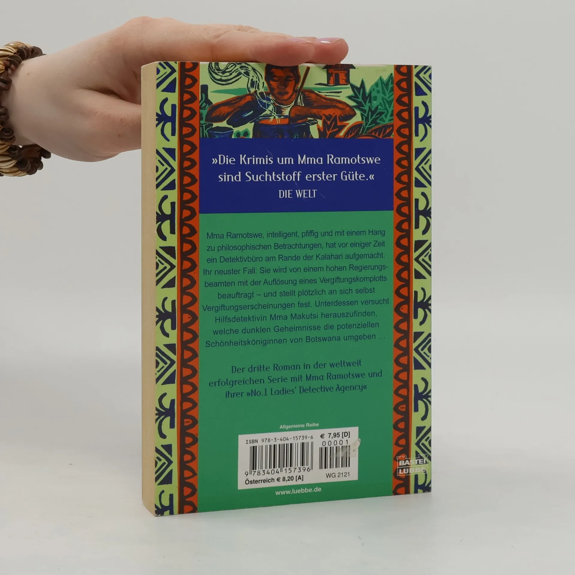 Mma Ramotswe, intelligent, pfiffig und mit einem Hang zu philosophischen Betrachtungen, hat vor einiger Zeit ein Detektivbüro am Rande der Kalahari aufgemacht. Ihr neuster Fall: Sie wird von einem hohem Regierungsbeamten mit der Auflösung eines Vergiftungskomplotts beauftragt - und stellt plötzlich an sich selbst Vergiftungserscheinungen fest. Unterdessen versucht Hilfsdetektivin Mma Makutsi herauszufinden, welche dunklen Geheimnisse die potenziellen Schönheitsköniginnen von Botswana umgeben. Der dritte Roman in der weltweit erfolgreichen Serie mit Mma Ramotswe und ihrere "No. 1 Ladies' Detective Agency"